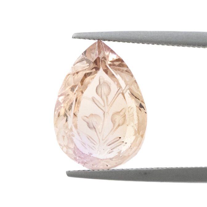 【生命を宿す、柔らかな花びら。植物を閉じ込めたようなアメトリン・インタリオ】