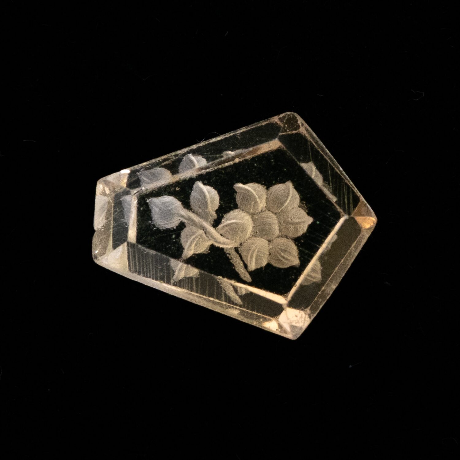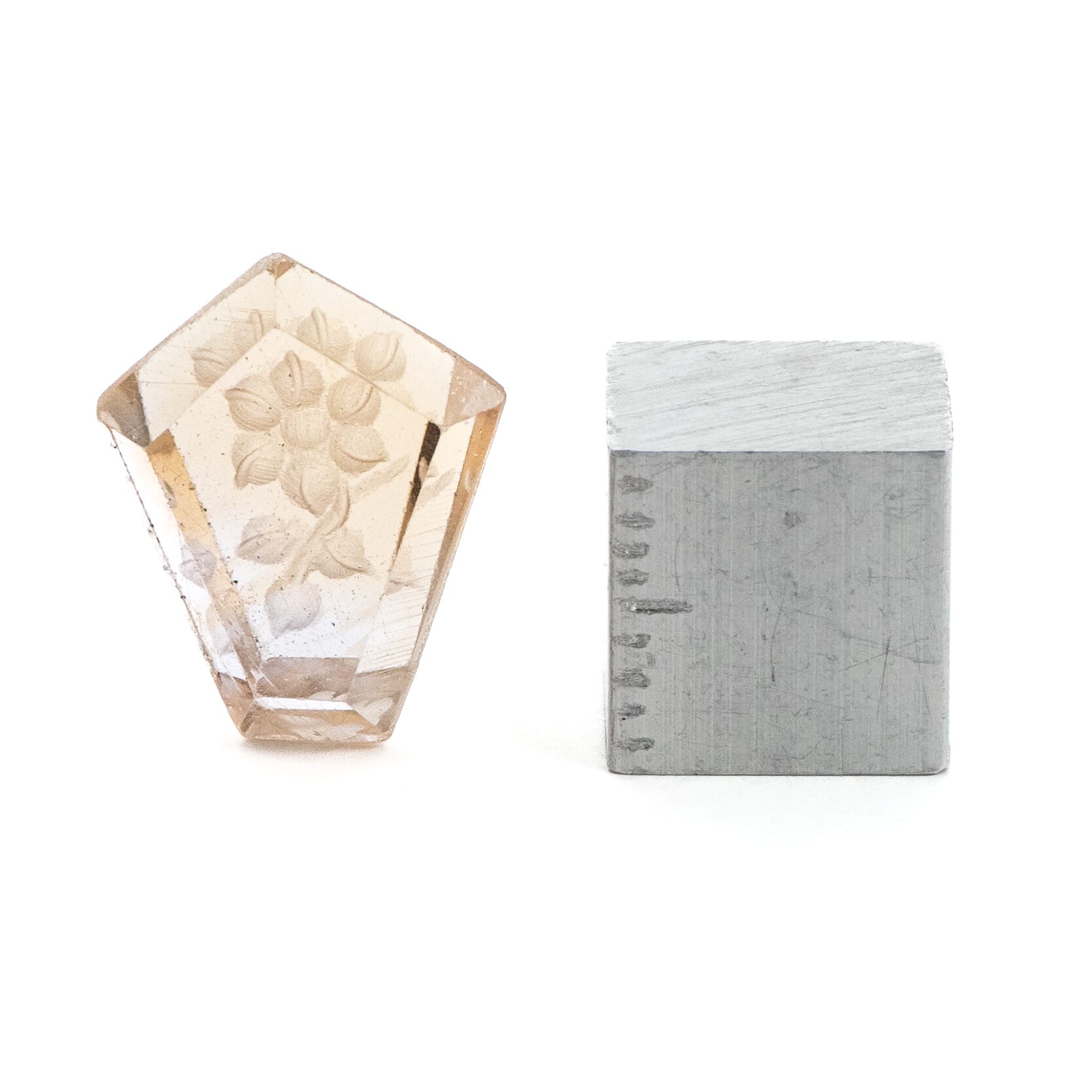 今回セレクトしたのは、この精緻な彫りを一切邪魔しない、極めてクリアな原石から研磨されたルースのみ。 フリーカットの直線的なシェイプが、花の柔らかさをより一層引き立てる力強いコントラストを生んでいます。