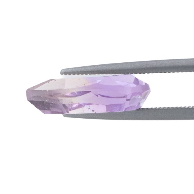 シトリンのイエローとアメジストのパープルがはっきりと分かれ、2色のハーモニーが楽しめるアメトリン。その名の通りアメジストとシトリンが一つの石の中で共生しているバイカラーの石です。