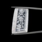 このページでご紹介しているローズクォーツのインタリオは、本来無機物である鉱物に、まるで生命を持つかのような大輪の花が、柔らかく咲き誇るように彫り込まれています。花びらの一枚一枚が、ため息が出るほど美しい繊細さ。ローズクォーツという素晴らしいカンバスに、のびのびと描かれた植物が、光に当たるたびにキラキラとした輝きと彩りに包まれ、華やかに咲き誇ります。うっすら乳白を帯び、光を取り込んで輝くローズクォーツにはぴったりのモチーフですね。