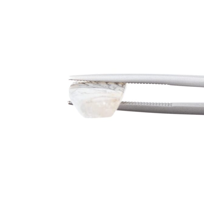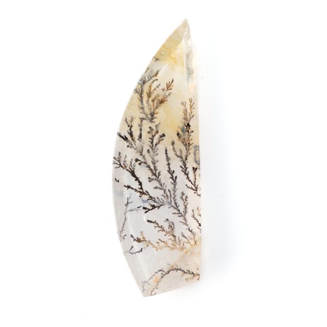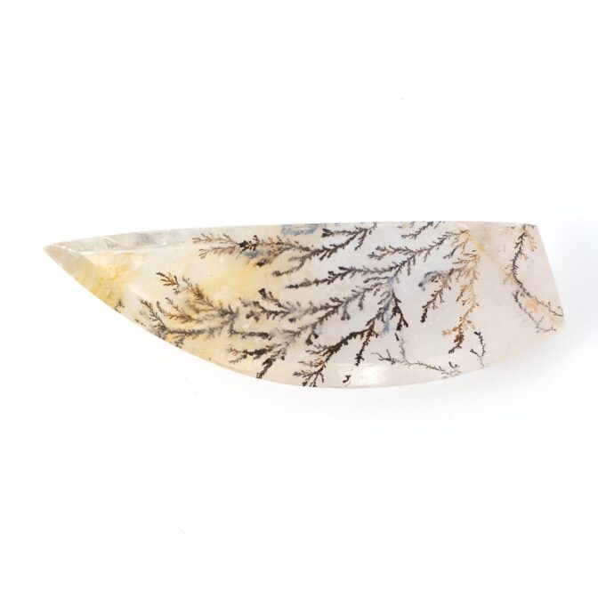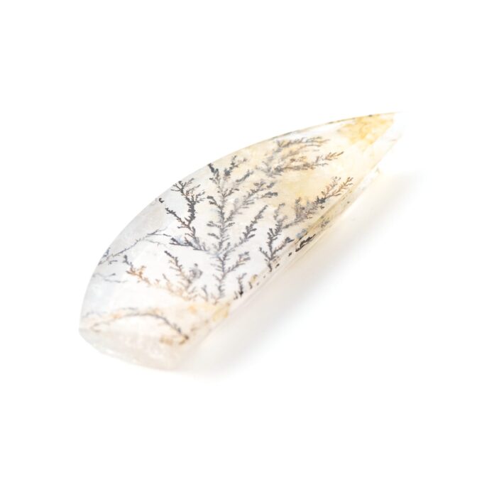 デンドリティッククォーツのようにインクルージョンが多い石は、傷やクラックも多く、あまり質の良さを感じさせない磨き上がりになります。ところが、このページでご紹介しているデンドリティッククォーツは、つやつやと潤んだような質感が美しいルース。全体的に可愛らしい雰囲気ながらも上質感を漂わせているのは、丁寧なカットと研磨を施されているからなのです。