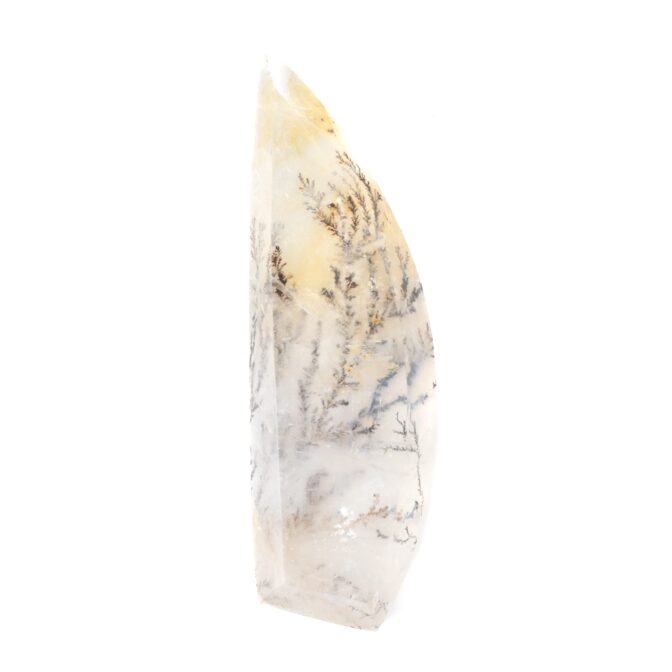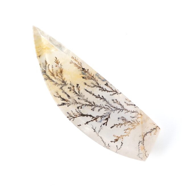 「デンドリ」という言葉のルーツはギリシャ語の「樹形」から来ています。「ティック」とは「シネマティック」「ロマンティック」などの外来語でもお馴染みの「〜のような」を示す接尾語。「デンドリティッククォーツ」とは、まるで植物のような模様を内包したクォーツ(水晶)という意味です。