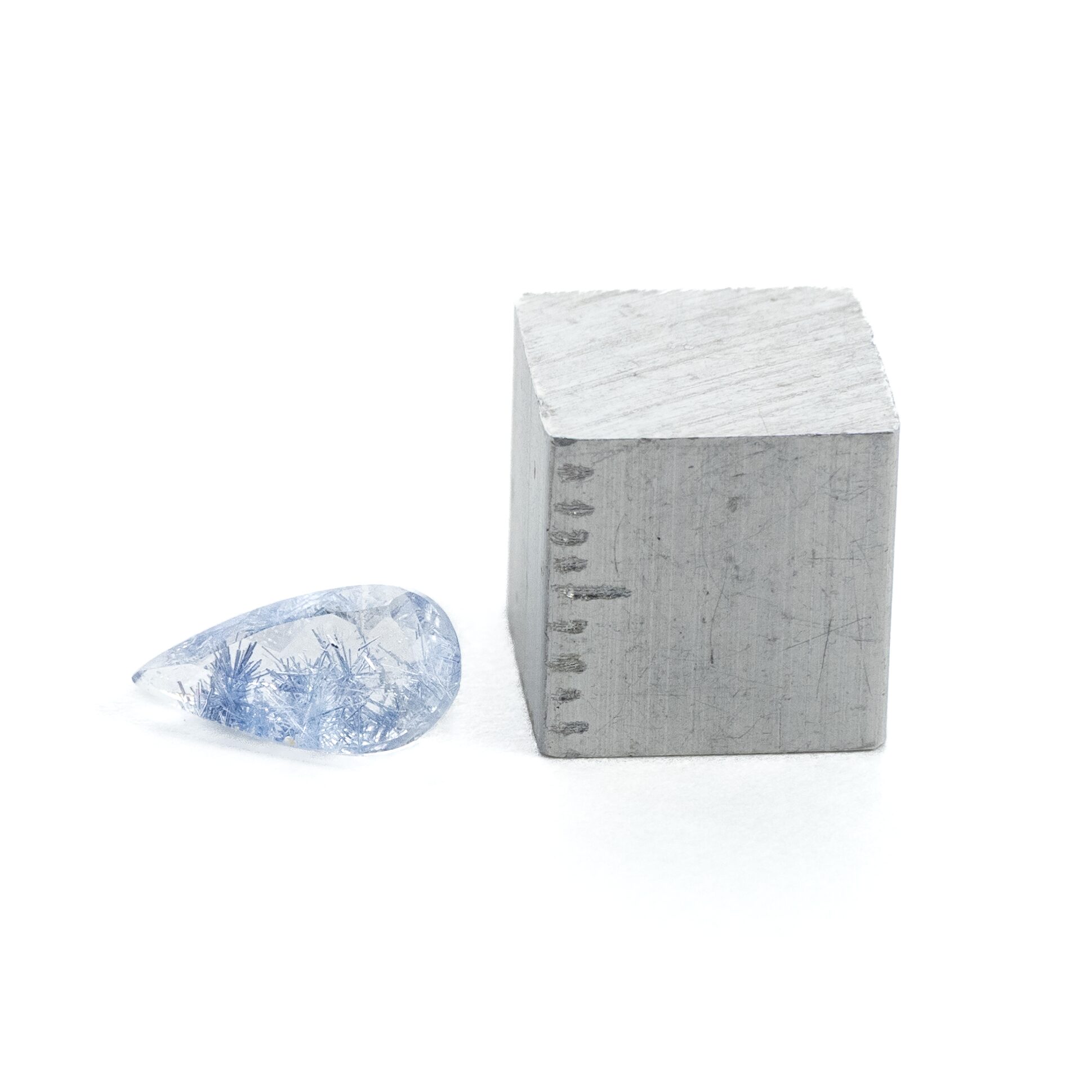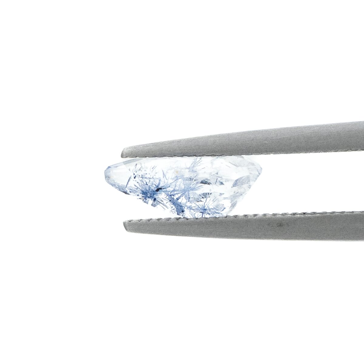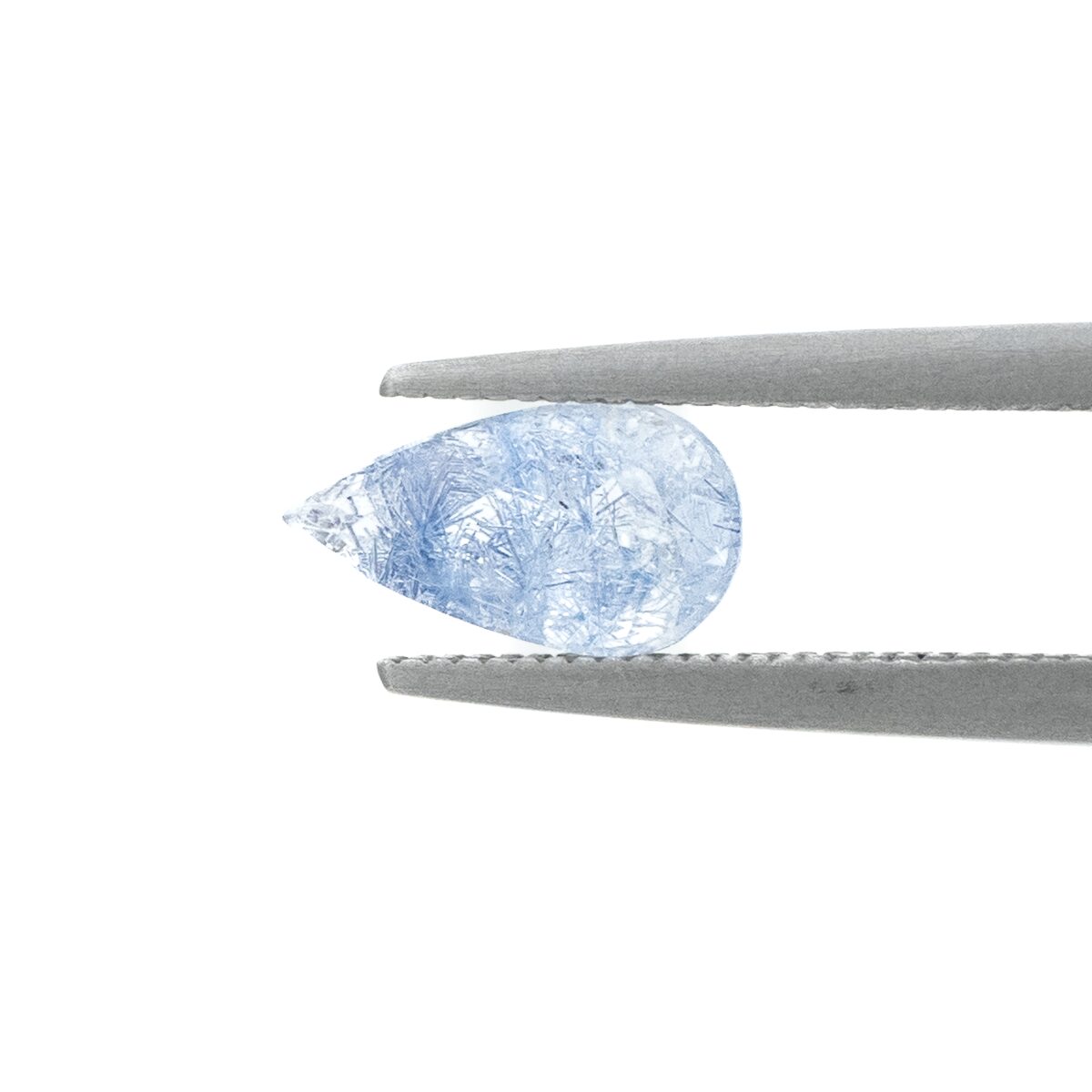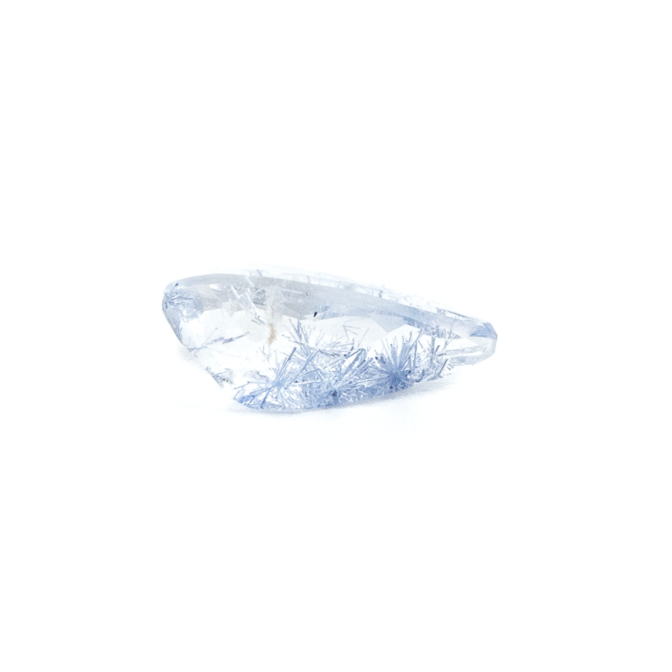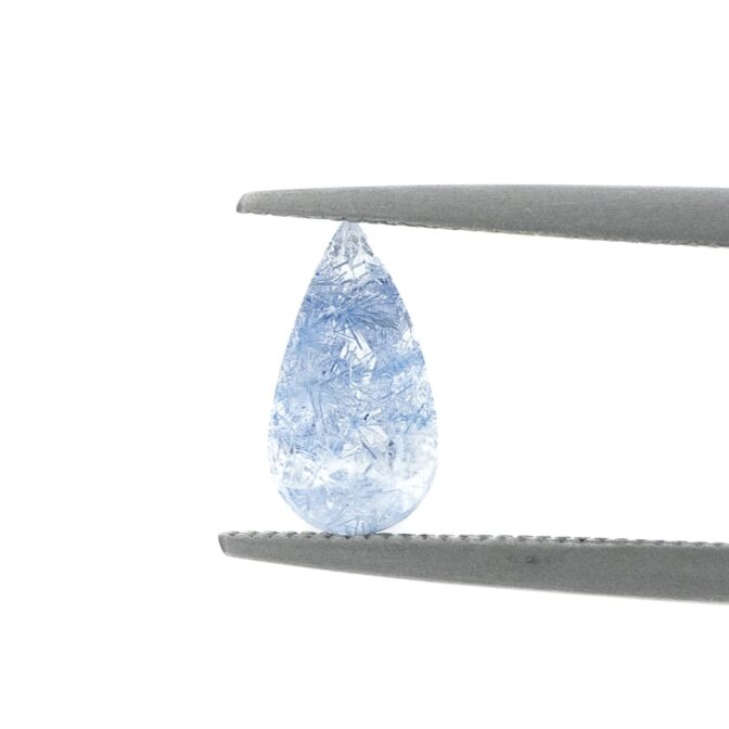 店主の偏愛ポイント:輝く雫のようなティアドロップシェイプ。全体に散りばめられた青い針が繊細に輝くルースです。