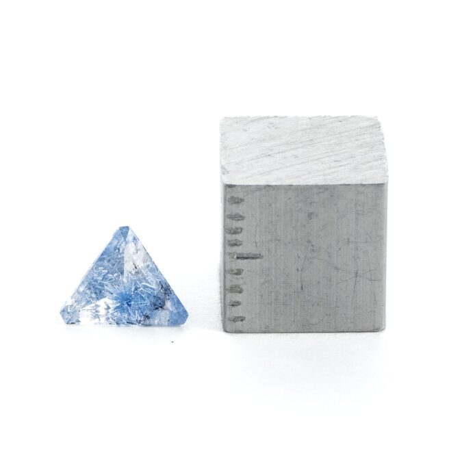 上質なクォーツには大きなクラックもなく、熟練の研磨によって潤んだきらめきが引き出されています。ジュエリー加工、特にリングに仕立てるのに理想的なサイズ感。ふとした瞬間に視界に入る「青い宇宙」は、持ち主の心に静かな自信と余裕を与えてくれるでしょう。