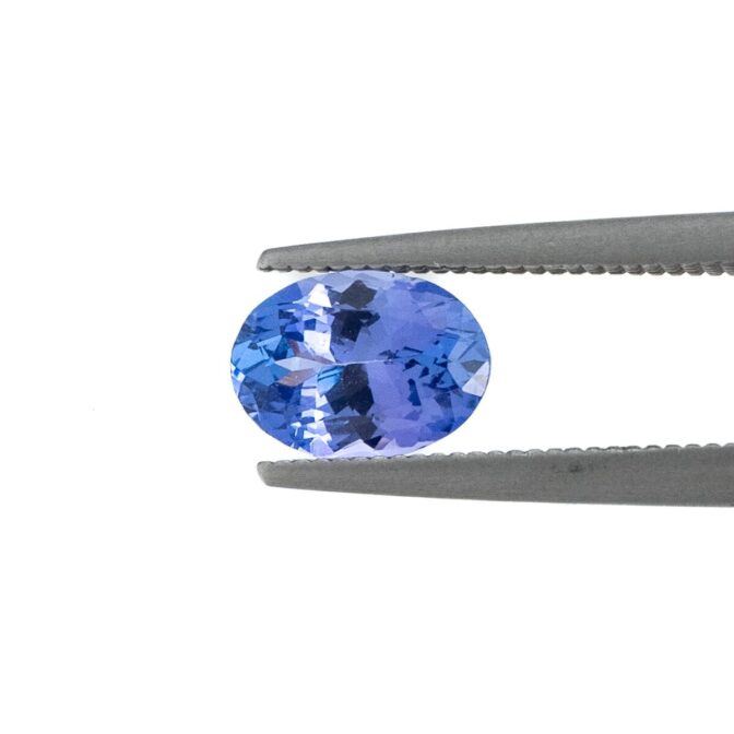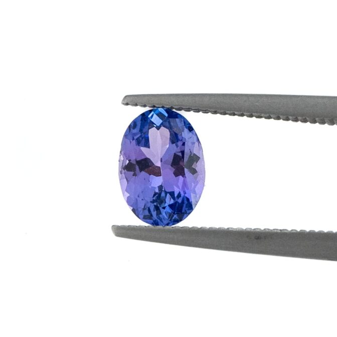 近年は色の薄いルースなら見つけるのも難しく無くなってきましたが、しっかりと発色しつつ輝きと形が美しいものは今でも入手困難です。こちらは価格と品質のバランスがよく、ジュエリー加工にピッタリなルース。脇石に白く輝くダイヤモンドを数粒あしらい、リングにしたらタンザナイトの色と輝きをより引き立ててくれそうです。