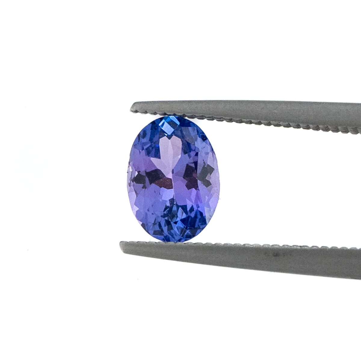 このタンザナイト、多色性の強い石なので、角度や光源によって気まぐれにネイビーブルーから藤紫に色を変えます。そのなめらかな色のグラデーションの美しさは、見るものを一瞬で魅了してしまいます。濃い色に発色しているものほど高い値段で取引され、茜色の空から深い夜のブルーになる一瞬を切り取ったかのような色合いは、何度見てもため息が出てしまいます。このページでご紹介しているタンザナイトも、上品なオーバルブリリアントカットが施され、宝石として端正な輝きを放ちます。濃く深いながらも鮮やかさと軽やかさを持つカラーで、正統派の美しさを誇ります。