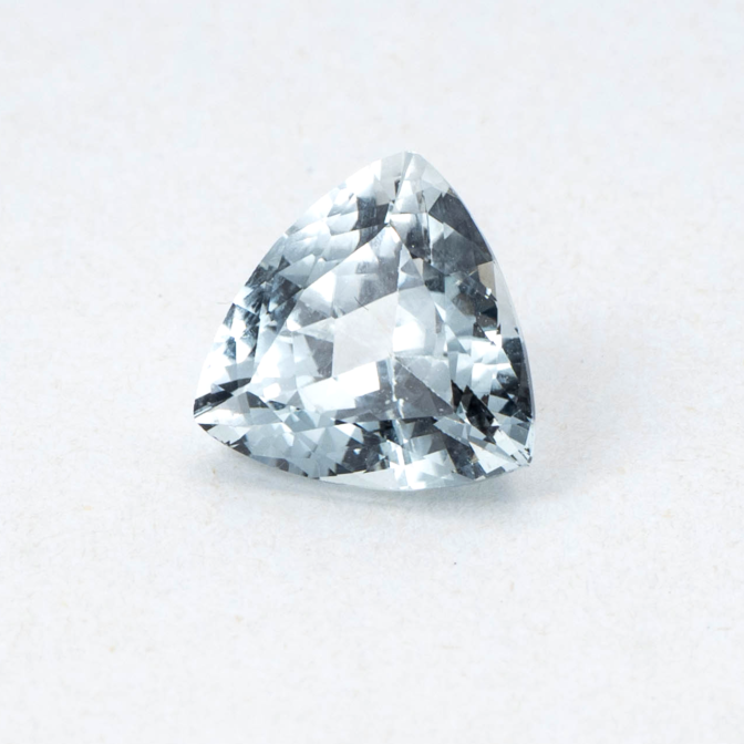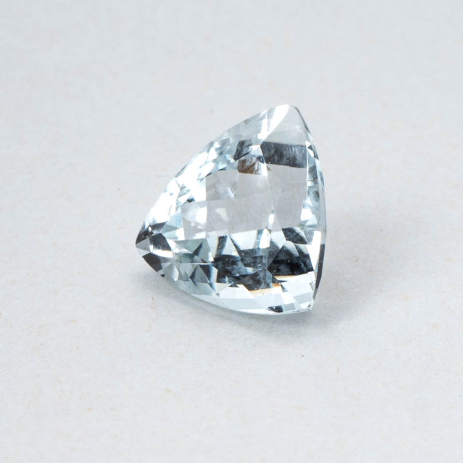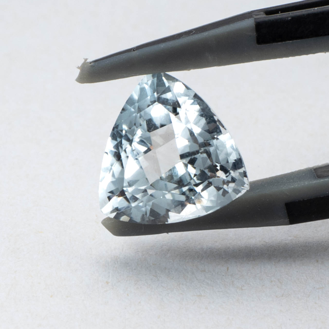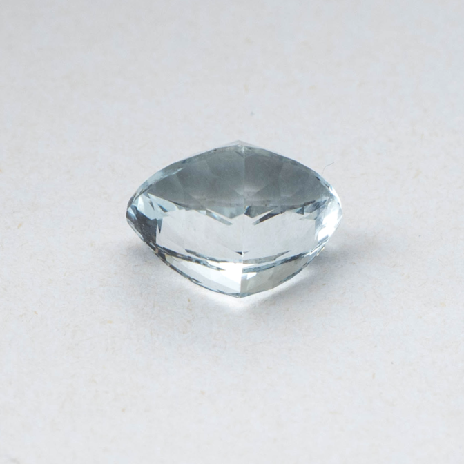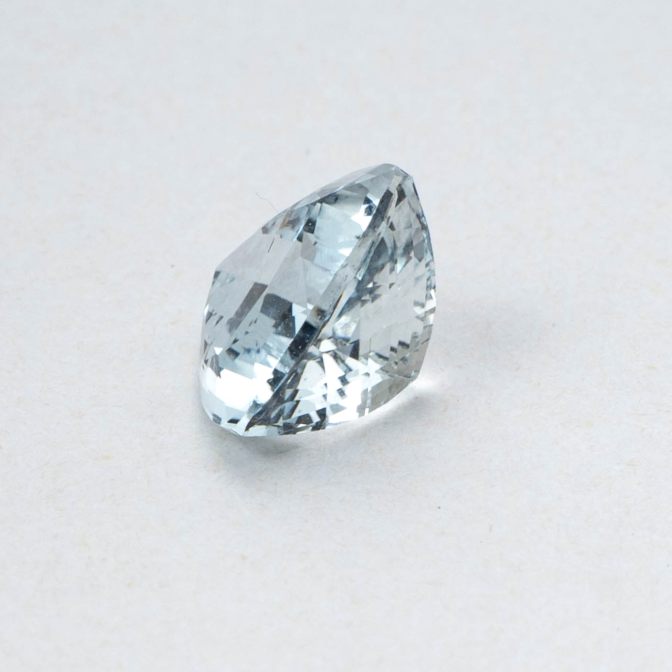 このページでご紹介しているブルートパーズは非加熱で青みを持つ天然ブルートパーズ。ほんのりアイスブルーの透き通る美しさは天然ならではの美しさ。大粒かつしっかりと厚みを取ってカットされているため、まるで周囲を明るく照らし出すような華やかな輝きを持ちます。トパーズが持つ清らかなきらめきを最大限に引き出した研磨も見事。全方向隙なくあでやかにきらめくよう、丁寧にカットされています。