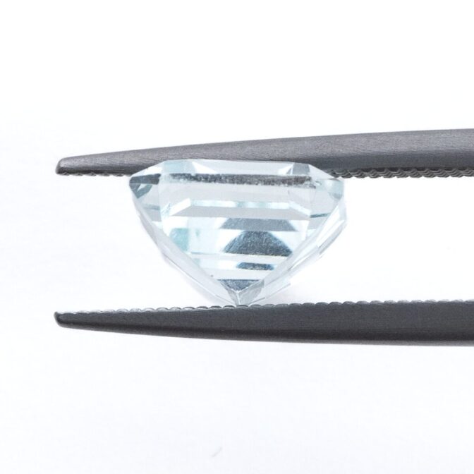 でも、非加熱のナチュラルトパーズがどんな色味なのか、気になる。石好きさんなら少なからず、そんな願望を抱くと思います。実は11月生まれで誕生石がトパーズのまるむ商会店主。トパーズにはひとかたならぬ思い入れがあり、非加熱ブルートパーズにも憧れを抱いています。そんな私がツーソンで出会ったのが、こちら。ブラジル産でとても希少なナチュラルトパーズは、眺めていると心が安らぐ不思議な色と輝きを宿しています。ほんのりアイスブルーの透き通る美しさは、天然ならではの美しさ。大粒かつしっかりと厚みを取ってカットされているため、まるで周囲を明るく照らし出すような華やかな輝きを持ちます。トパーズが持つ清らかなきらめきを最大限に引き出した研磨も見事。全方向隙なくあでやかにきらめくよう、丁寧にカットされています。