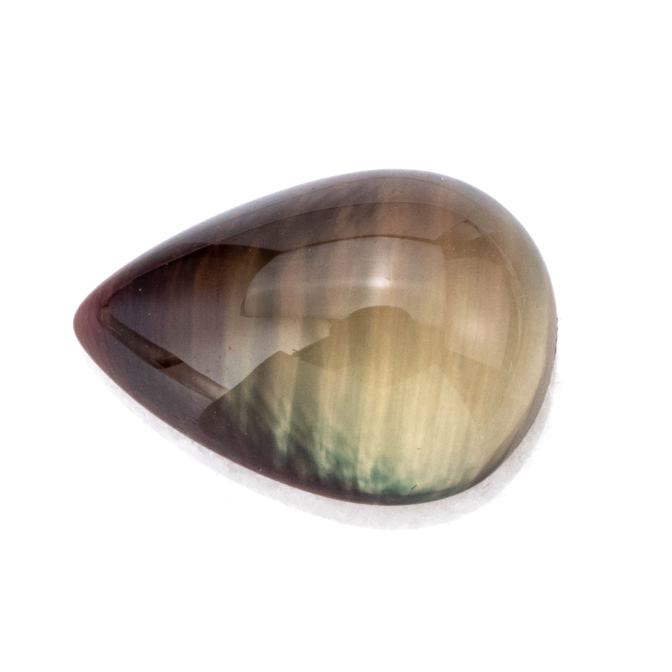 レッド、グリーン、イエロー。全く性質の異なる3色が一つの石の中で混じり合い、美しい模様を描き出すアンデシン。透明度が高く、彩度の高い色合いが鮮烈にせめぎ合いながら見るものを魅了します。光の加減でゆらめく色と光がとても神秘的。複雑に折り重なった色と模様が、緩やかなドーム状の表面を透かして輝き、横や斜めから見た時の表情にも心がときめきます。