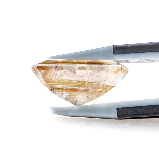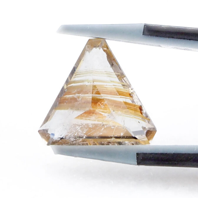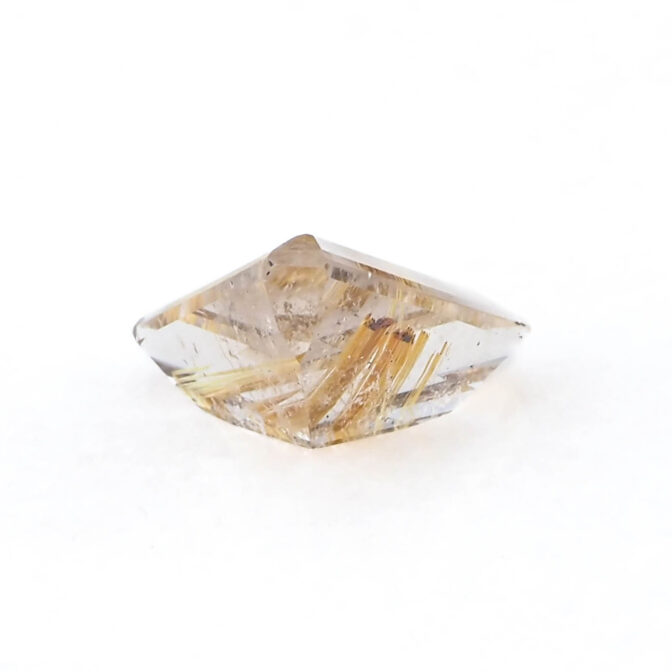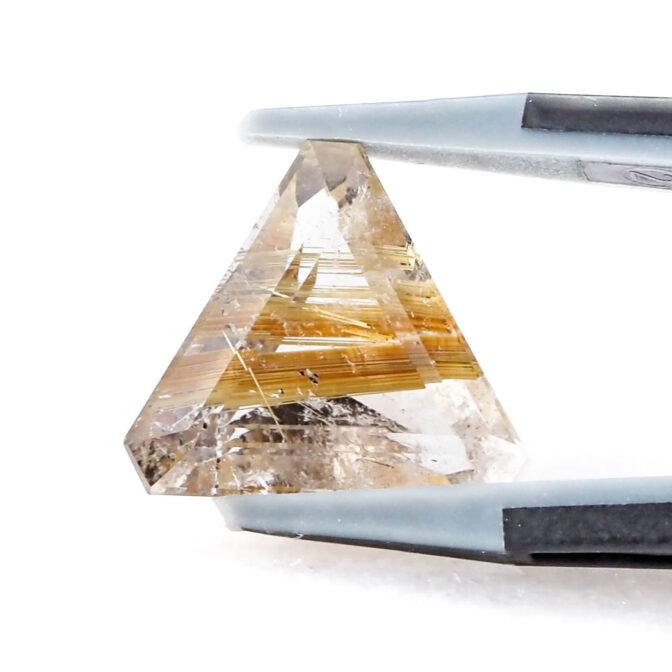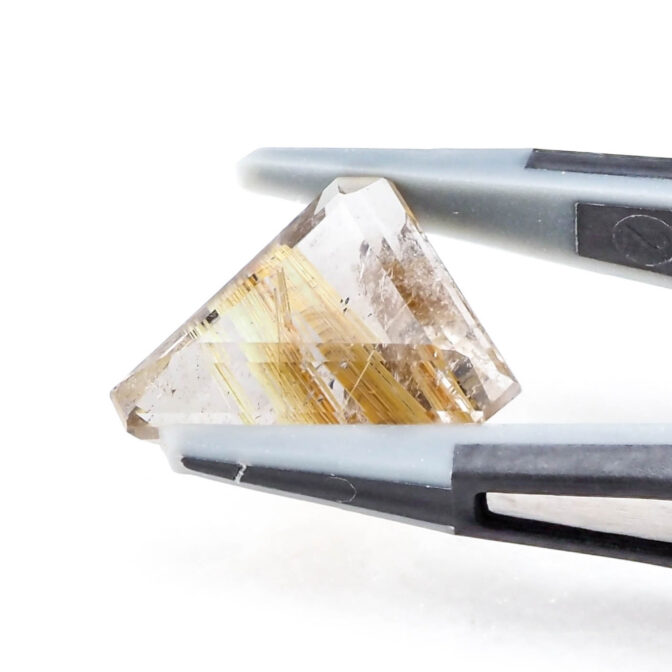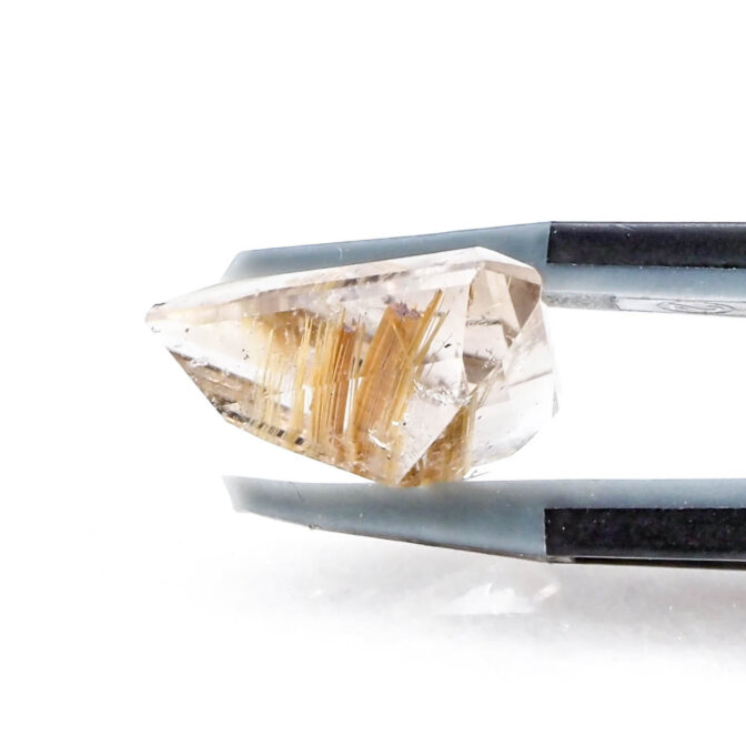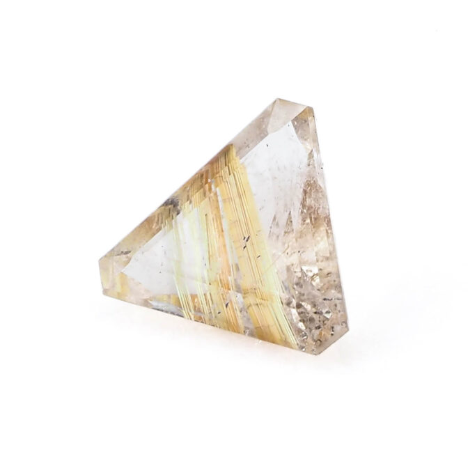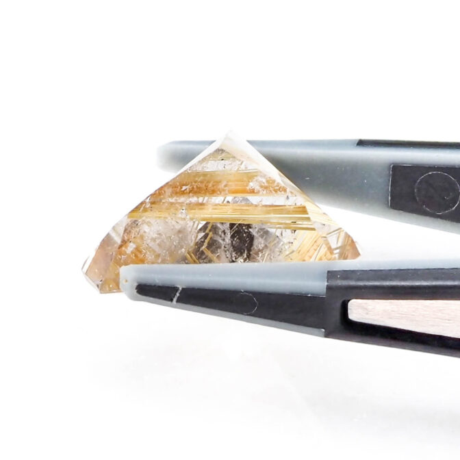【ユニークなカットに黄金のルチルがきらりときらめく個性的なルチルクォーツ】