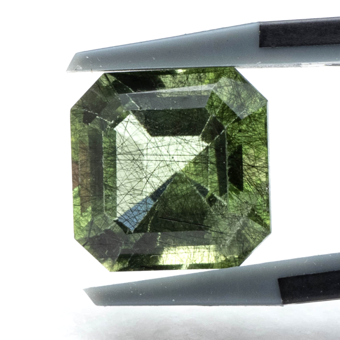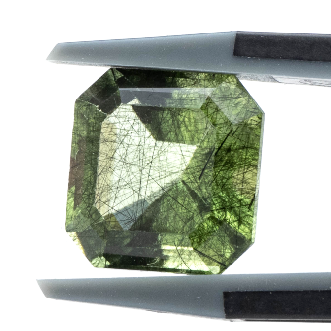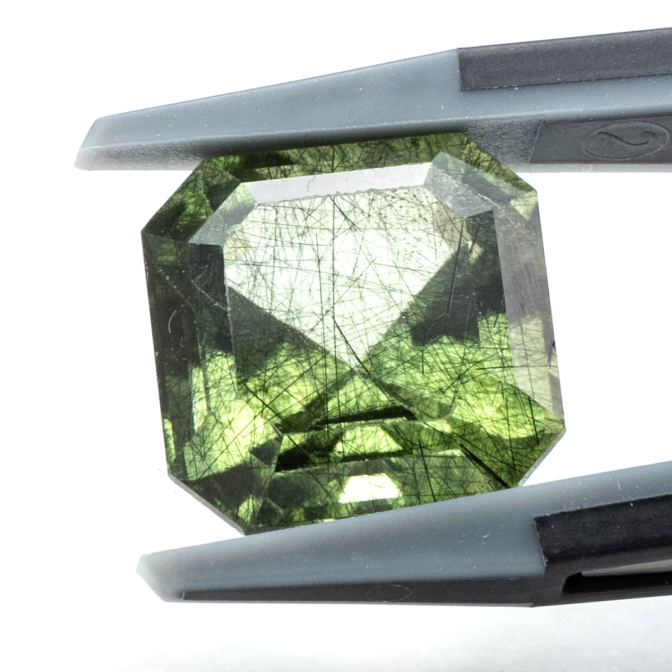 白く透き通る美しいホワイトトパーズに黄金の針状インクルージョンがゴージャスで華やか。高品質色石の一大産地、スリランカからレアな針入トパーズのルースが入荷しました。エメラルドカットのファセット面から透けて見える金色の針がまるでイリュージョンのように魅惑的。複雑に絡み合う針と完璧なカットが織りなす神秘的な世界は、天然石の面白さと美しさをギュッと凝縮し、インクルージョンの奥深い世界を楽しめます。