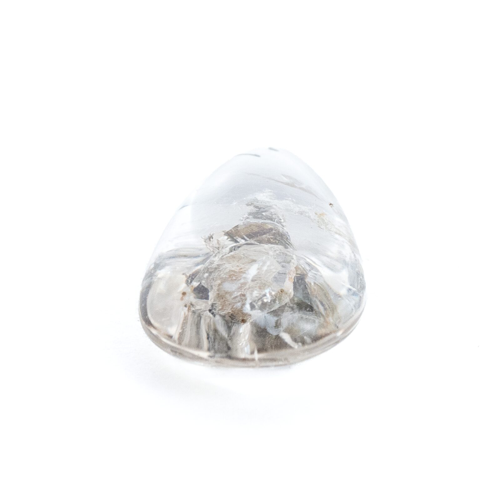 【クォーツの中に銀色パイライトの粒状結晶がちょこんと入り込んだ芸術的なルース】