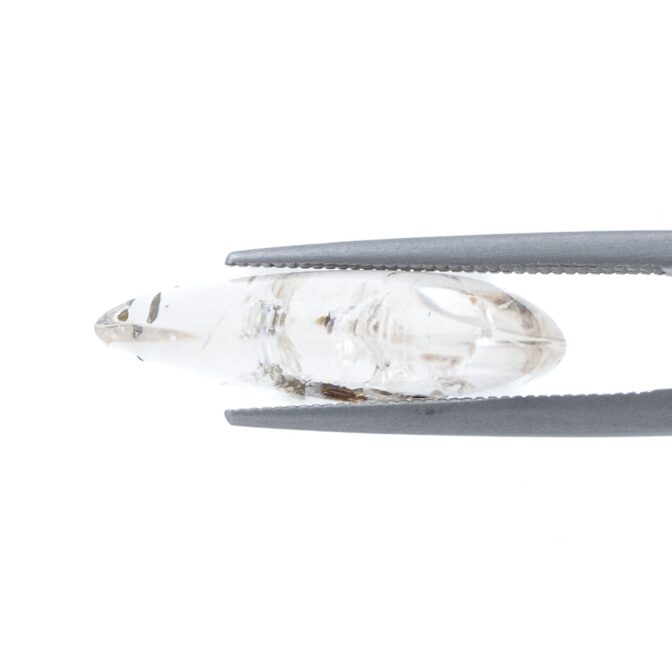 細長く洗練されたティアドロップシェイプで、宝石としての存在感もあります。サイズ感もちょうど良く、大きすぎず小さすぎずでジュエリーにもできるのが嬉しいポイント。ルースのままコレクションにしても良いですが、彫金でペンダントトップにしてみたり、ワイヤーアートとの相性も良さそうです。