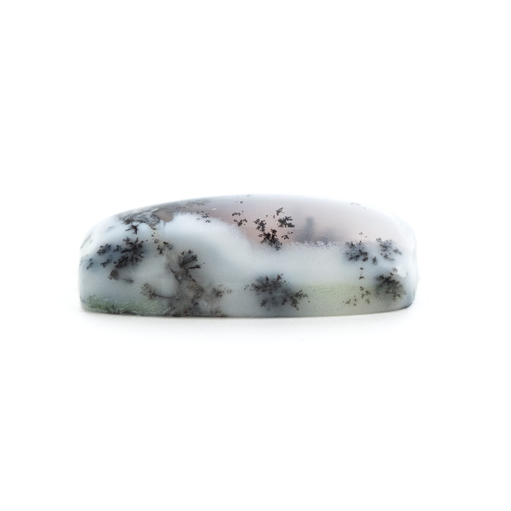 コモンオパールの中でも特に面白いのがこのページでご紹介しているデンドリティックオパール。「デンドリ」とはギリシャ語で「樹形」のこと。その名の通り植物の形にも見える黒や褐色のインクルージョンを持つコモンオパールのことです。デンドリティッククォーツやデンドリティックアゲートのオパールバージョンということになります。