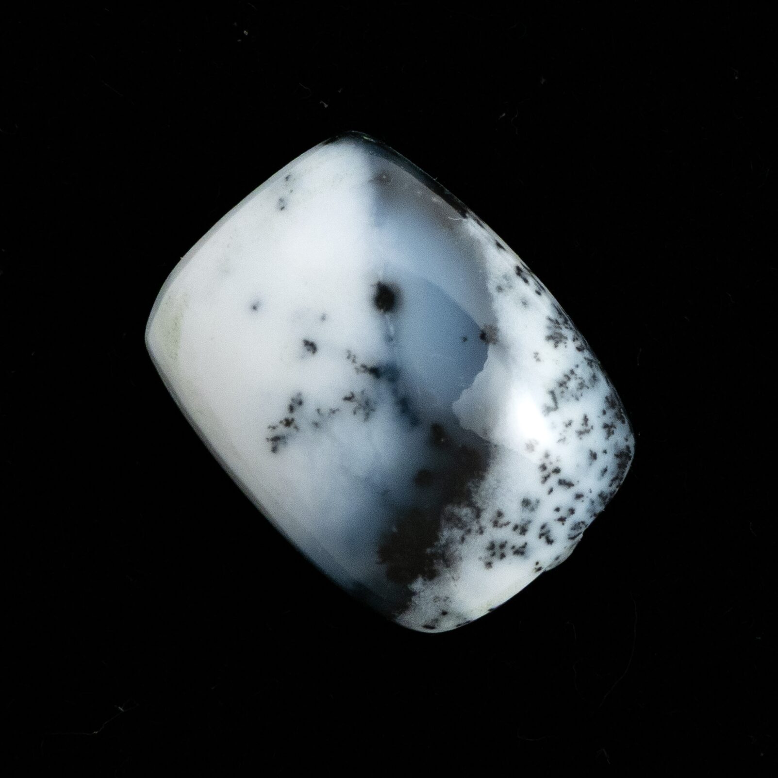 コモンオパールの中でも特に面白いのがこのページでご紹介しているデンドリティックオパール。「デンドリ」とはギリシャ語で「樹形」のこと。その名の通り植物の形にも見える黒や褐色のインクルージョンを持つコモンオパールのことです。デンドリティッククォーツやデンドリティックアゲートのオパールバージョンということになります。