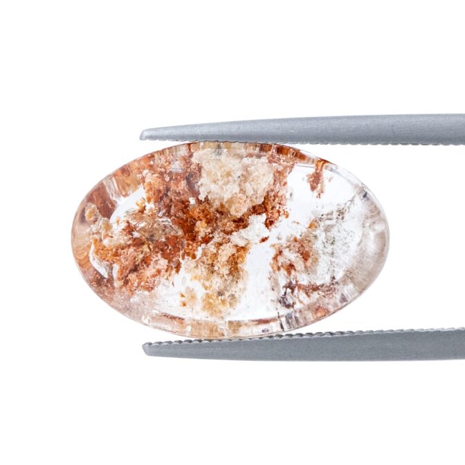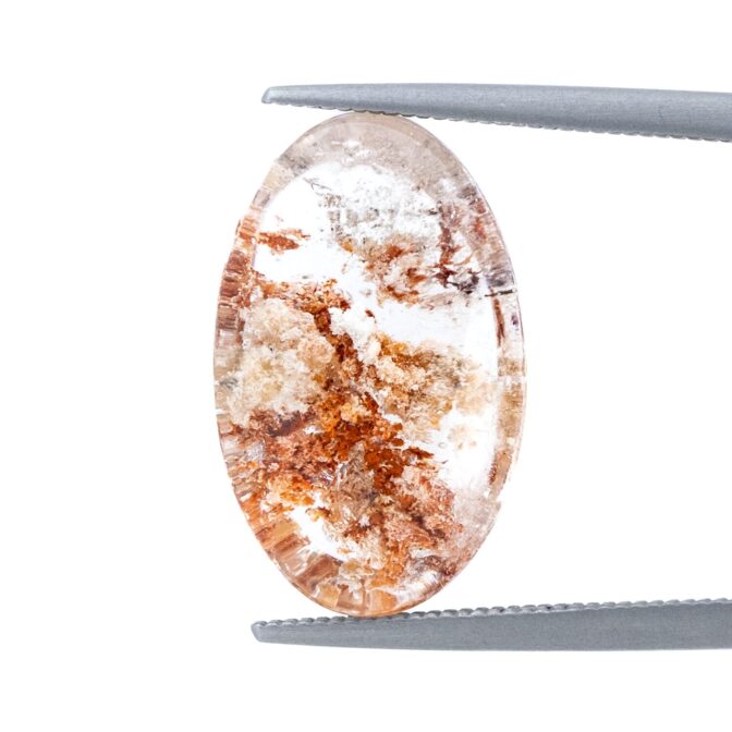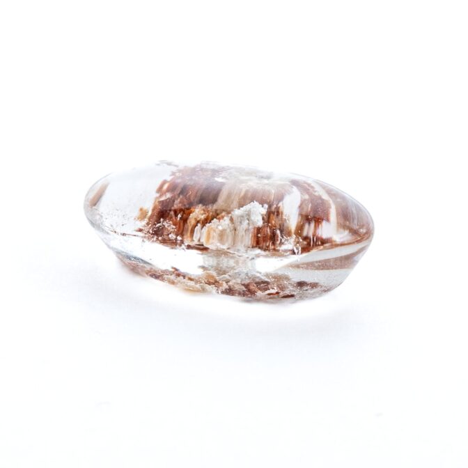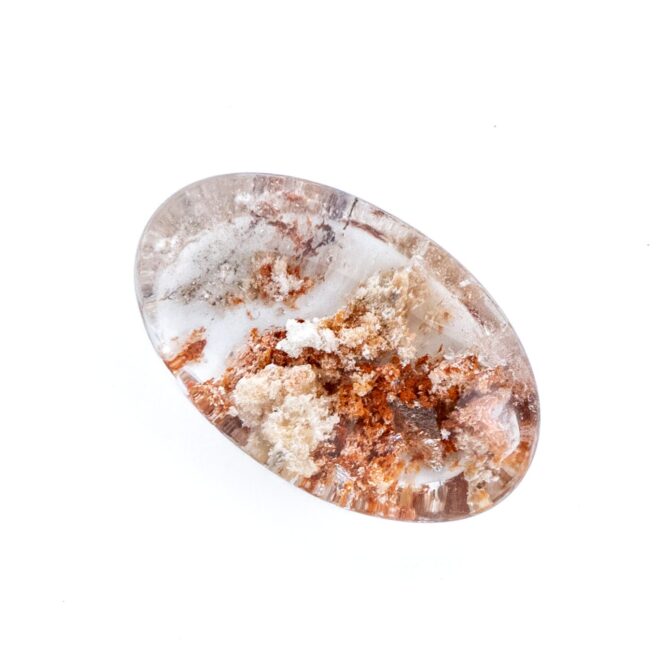 ガーデンクォーツにしては小さめサイズで、ジュエリーにするのにぴったりのサイズ感。ペンダントトップにも使えそうですが、あえてルースのまま眺めるのもおすすめ。インクルージョンが持つ色彩の豊かさに、見つめていると心が満たされます。
