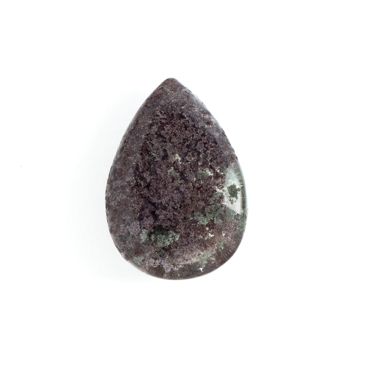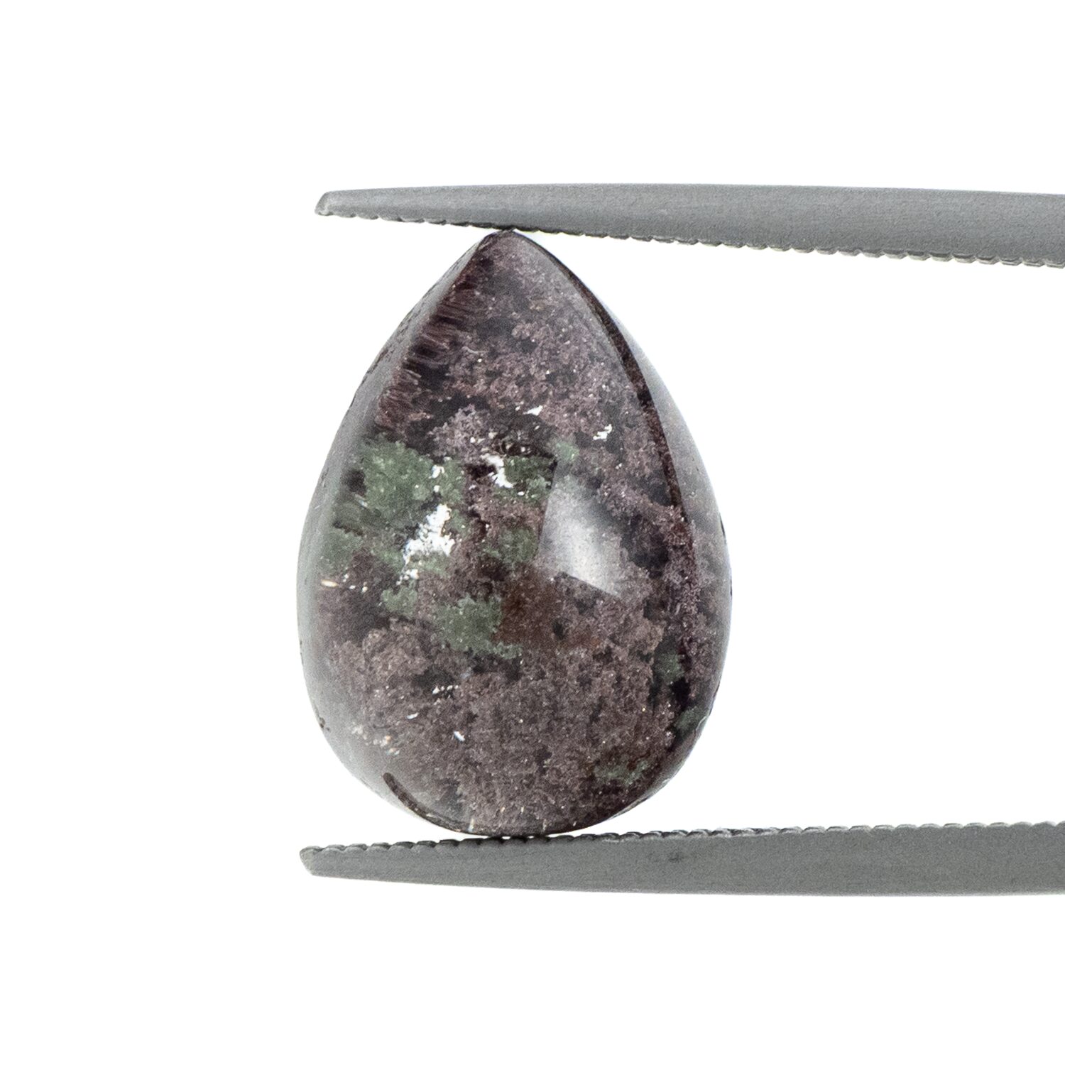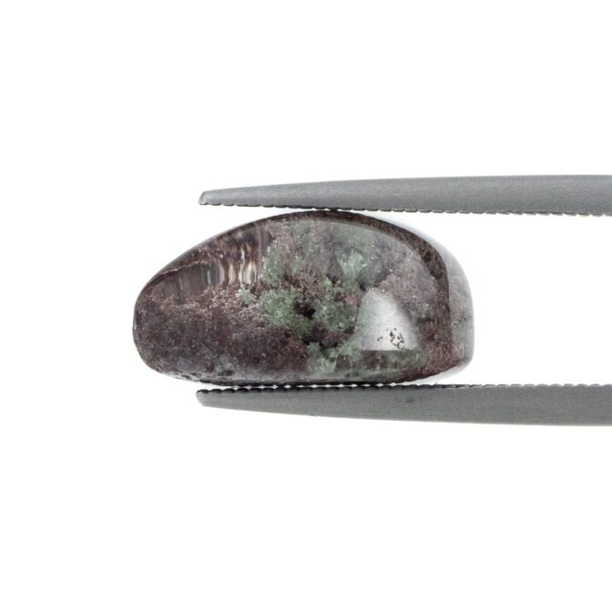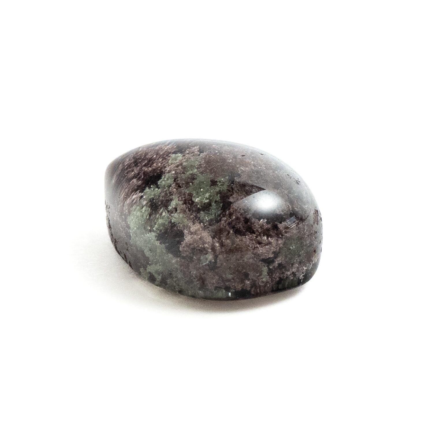 さて、そんなガーデンクォーツの中で最も人気なのが、小さめサイズのルース。リングやネックレスにぴったりの大きさで、ころんと丸くて可愛らしいのですよね。でも、最も入荷が難しいのも小さめサイズなのです。インクルージョンをセンス良く切り取ってバランスよく配置できるよう研磨してこそのガーデンクォーツ。小さければ小さいほど、美しい景色を内包できる部分が少なく、変化に乏しく魅力が少ないルースとなってしまいます。そんな理由で、小さいサイズを見かけたらなるべくたくさん仕入れていたのですが、つい先日ついに完売。困っていたところで、懇意にしている仕入れ先さんがふらりと持って来てくださったのが、このページでご紹介しているルースです。