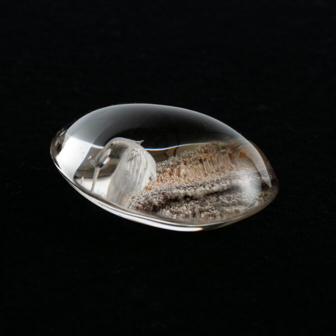 ガーデンクォーツは、まるむ商会にとって始まりの石。石を好きになったきっかけでもあります。それは、今を遡ること約十年前、タイに住んでいた時に初めて見た天然石ルースがガーデンクォーツだったから。そのインクルージョンの多様さ、景色の美しさ、水晶の潤んだような透明度に、ひと目で魅了されてしまったのを覚えています。それ以来、ガーデンクォーツは私の中で特別な地位を占めています。長い時を経て、水晶がさまざまな内包物を抱き込み、それがやがて美しい景色として人の目の前に現れる。ロマンあふれる物語を感じさせる石なのです。
