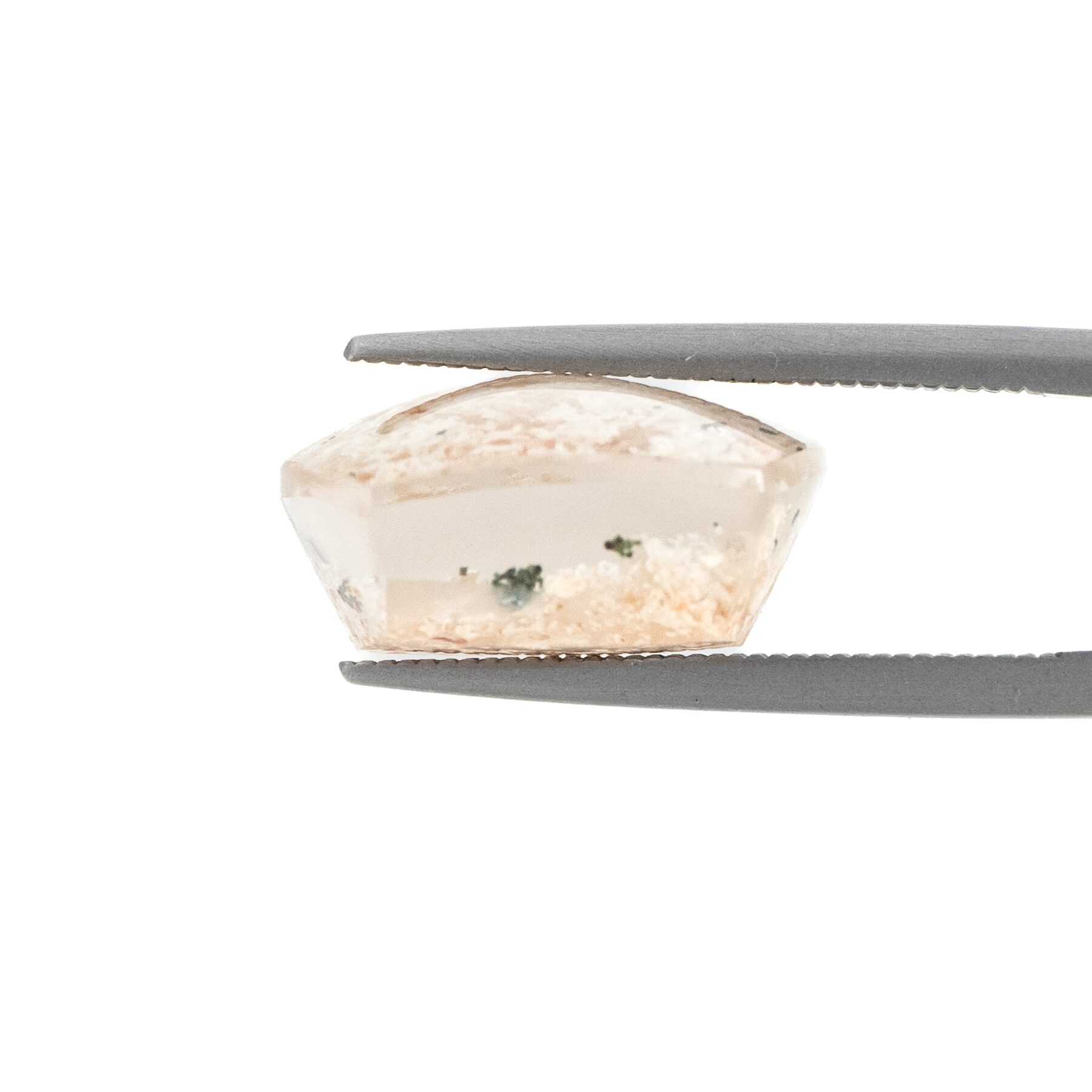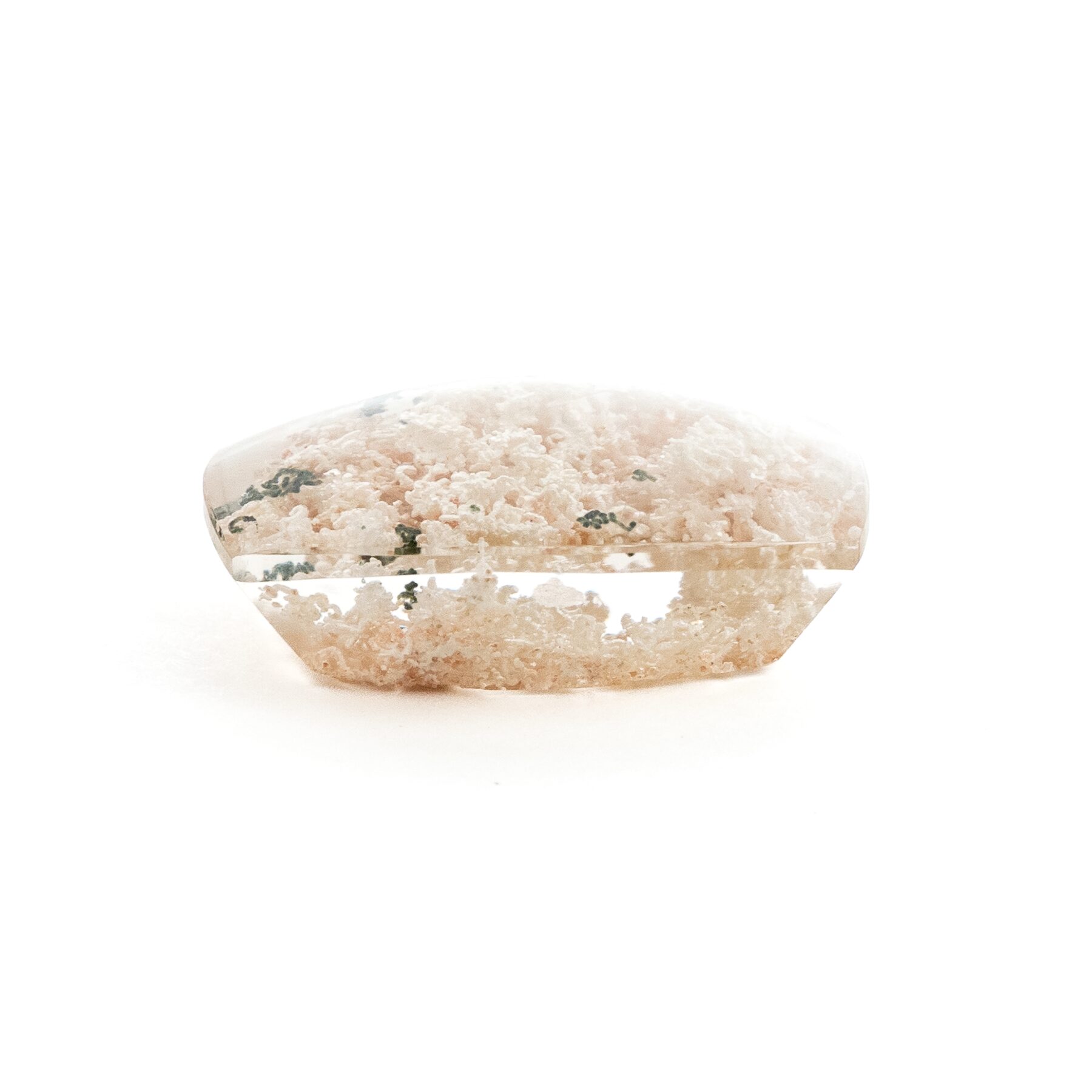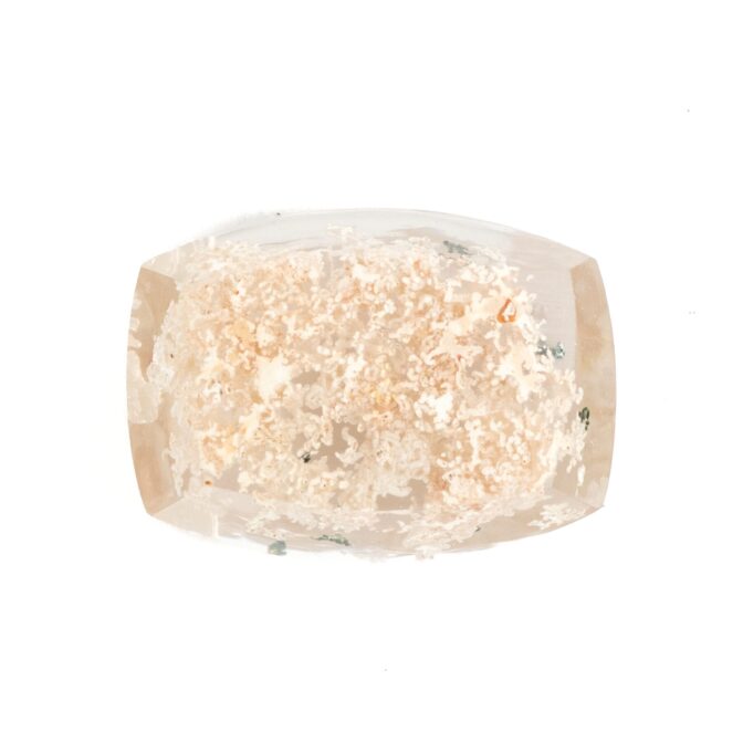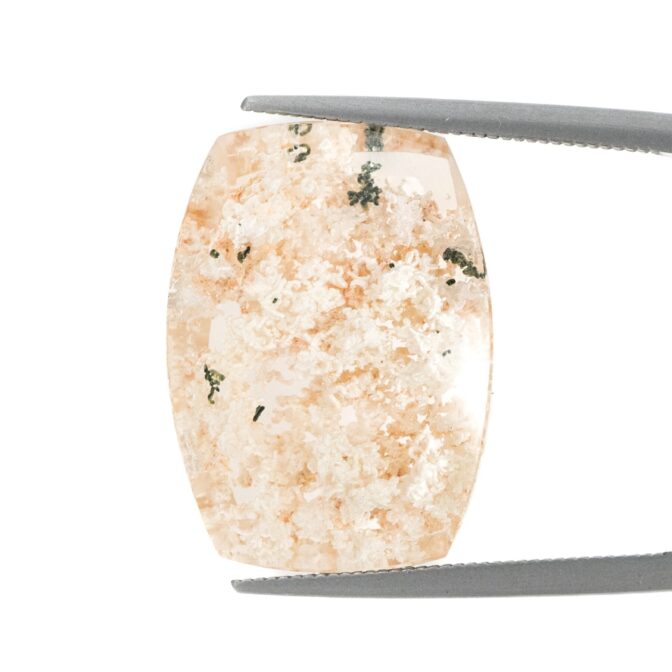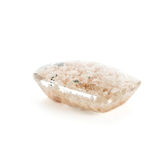 このページでご紹介するのは、明るく眩しいホワイトカラーの中に、ほんの少しピンクが含まれた可愛らしい印象のルース。ちらりと見える、グリーンが芽吹きの季節を彷彿とさせ、清楚な美しさの中にもしっかりとした生命力を感じることができます。身につけているだけで元気になれそうなルースなので、ジュエリーにするのもおすすめ。