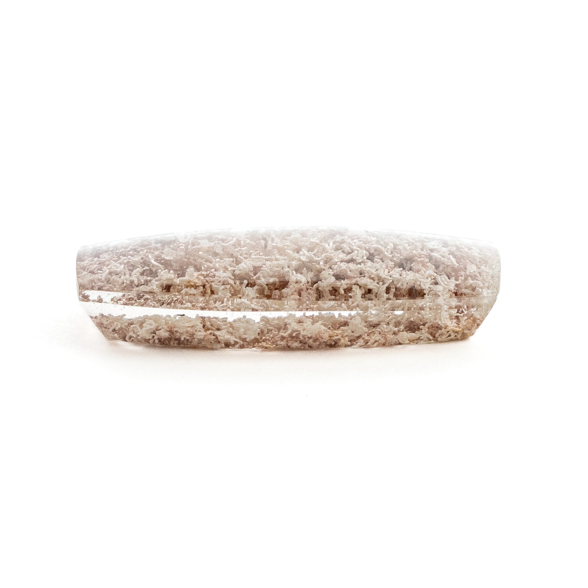 ガーデンクォーツは、まるむ商会にとって始まりの石。石を好きになったきっかけでもあります。それは、今を遡ること約十年前、タイに住んでいた時に初めて見た天然石ルースがガーデンクォーツだったから。そのインクルージョンの多様さ、景色の美しさ、水晶の潤んだような透明度に、ひと目で魅了されてしまったのを覚えています。それ以来、ガーデンクォーツは私の中で特別な地位を占めています。長い時を経て、水晶がさまざまな内包物を抱き込み、それがやがて美しい景色として人の目の前に現れる。ロマンあふれる物語を感じさせる石なのです。