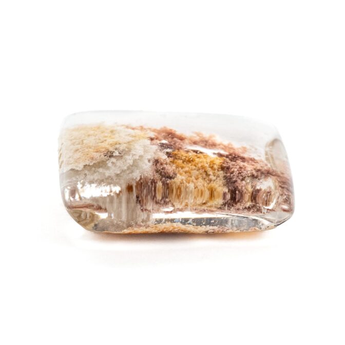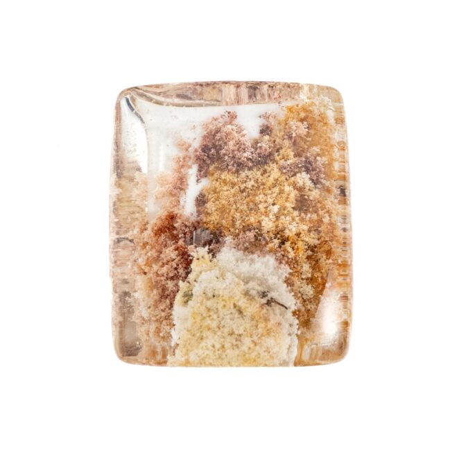 このページでご紹介するのは、潤んだ水晶の輝きと遠近感のある景色をもつガーデンクォーツ。まるで、遠浅の珊瑚礁の海を思わせるインクルージョンが、ひと時現実を忘れさせてくれます。どこまでも明るく暖かい水底に、クォーツを透かした光が波紋を作る。そんな印象的な光景を映し取ったかのよう。質の良い水晶を、原石から丁寧に磨くことによってしか得られない、上質な麗しさを持つルースです。