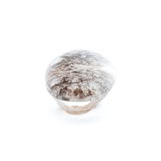 ガーデンクォーツは、まるむ商会にとって始まりの石。石を好きになったきっかけでもあります。それは、今を遡ること約十年前、タイに住んでいた時に初めて見た天然石ルースがガーデンクォーツだったから。そのインクルージョンの多様さ、景色の美しさ、水晶の潤んだような透明度に、ひと目で魅了されてしまったのを覚えています。それ以来、ガーデンクォーツは私の中で特別な地位を占めています。長い時を経て、水晶がさまざまな内包物を抱き込み、それがやがて美しい景色として人の目の前に現れる。ロマンあふれる物語を感じさせる石なのです。