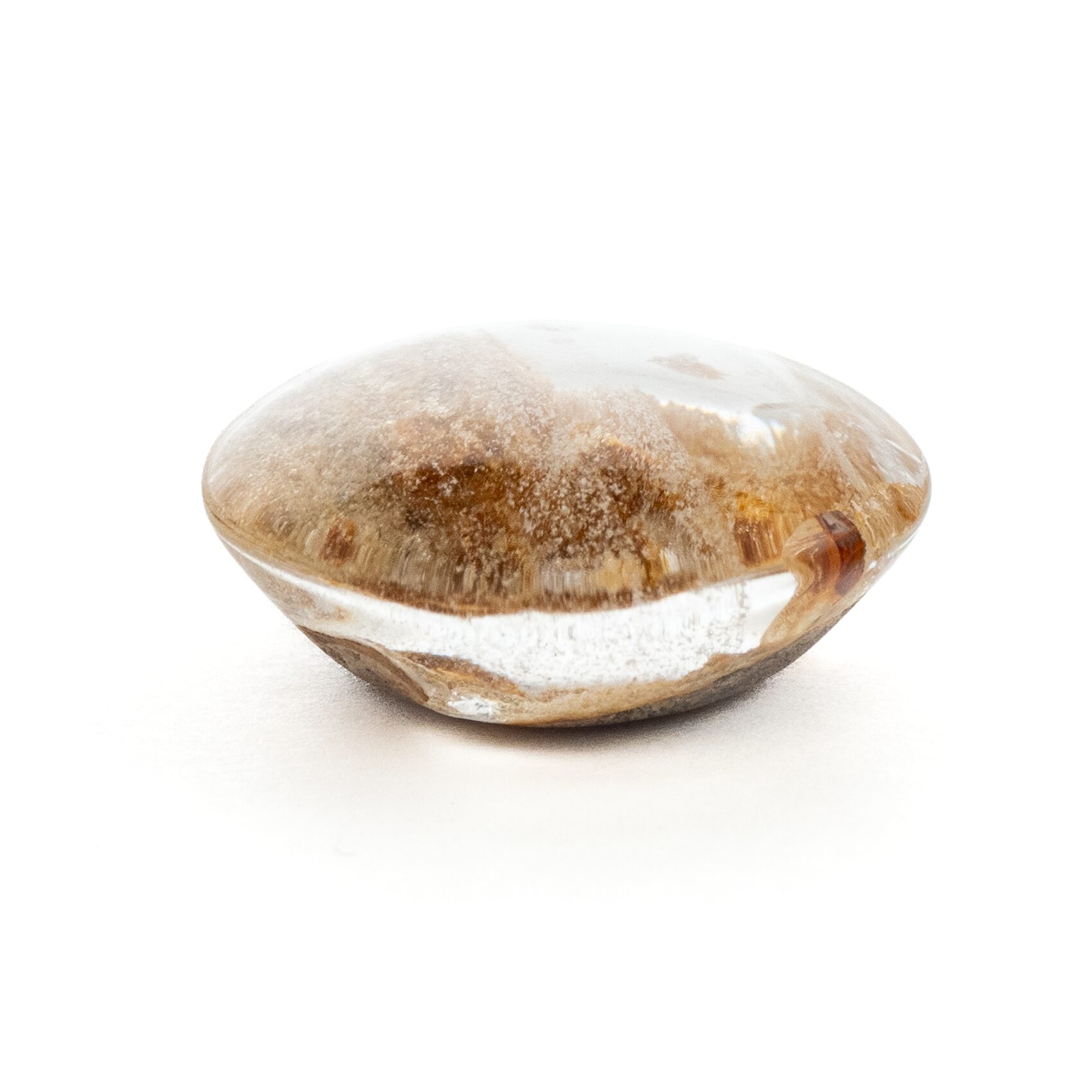 ガーデンクォーツは、まるむ商会にとって始まりの石。石を好きになったきっかけでもあります。それは、今を遡ること約十年前、タイに住んでいた時に初めて見た天然石ルースがガーデンクォーツだったから。そのインクルージョンの多様さ、景色の美しさ、水晶の潤んだような透明度に、ひと目で魅了されてしまったのを覚えています。それ以来、ガーデンクォーツは私の中で特別な地位を占めています。長い時を経て、水晶がさまざまな内包物を抱き込み、それがやがて美しい景色として人の目の前に現れる。ロマンあふれる物語を感じさせる石なのです。