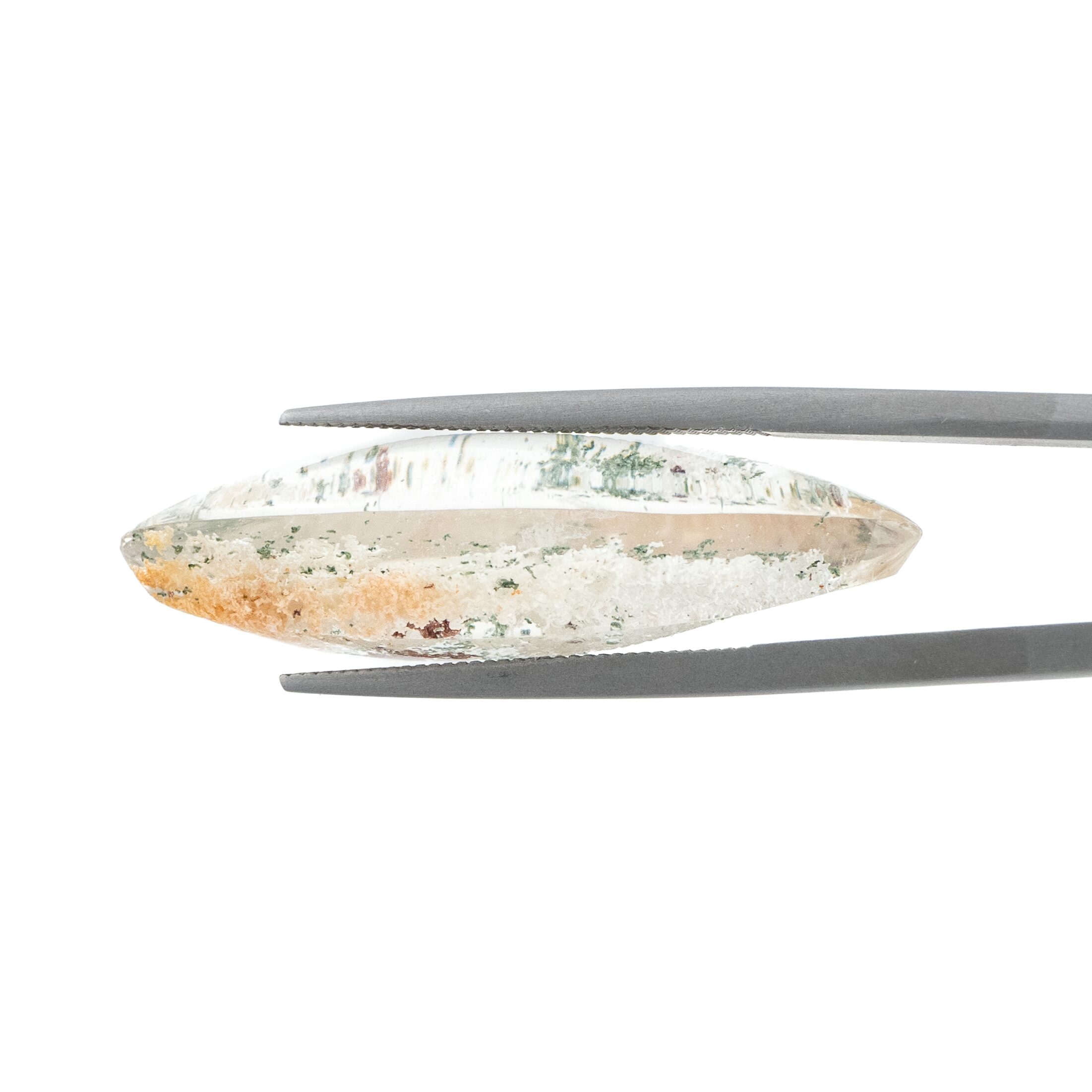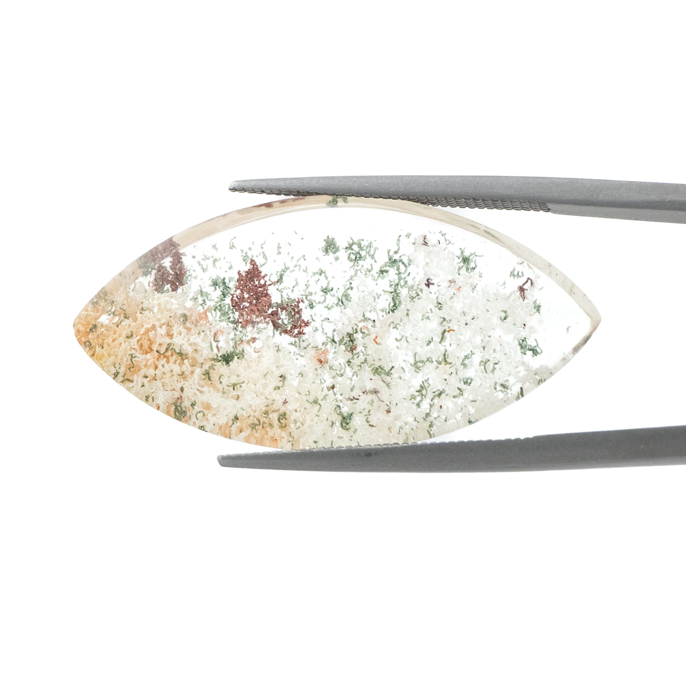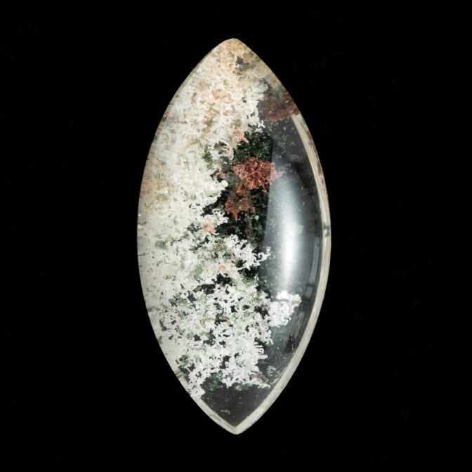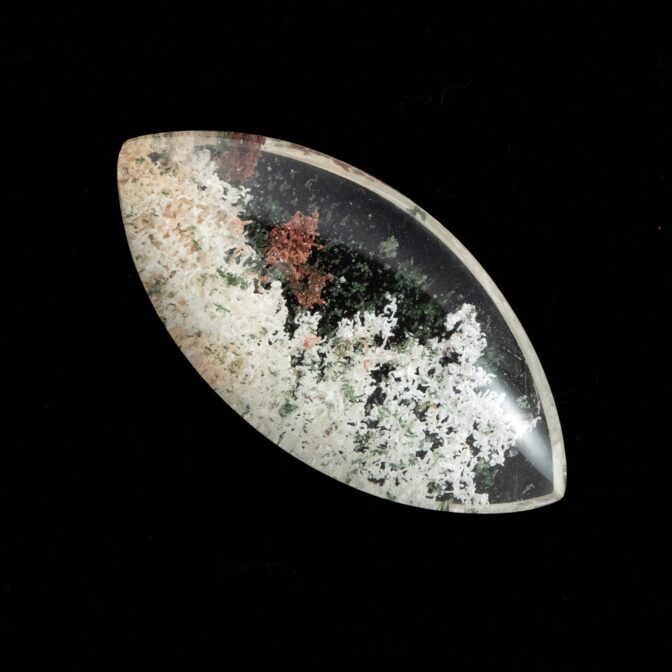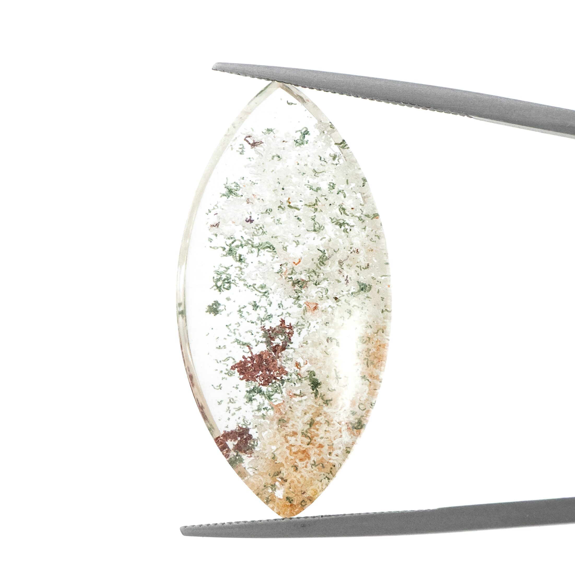 【珍しいマーキスカットが印象的。白と緑を含んだ豊かな森のガーデンクォーツ】