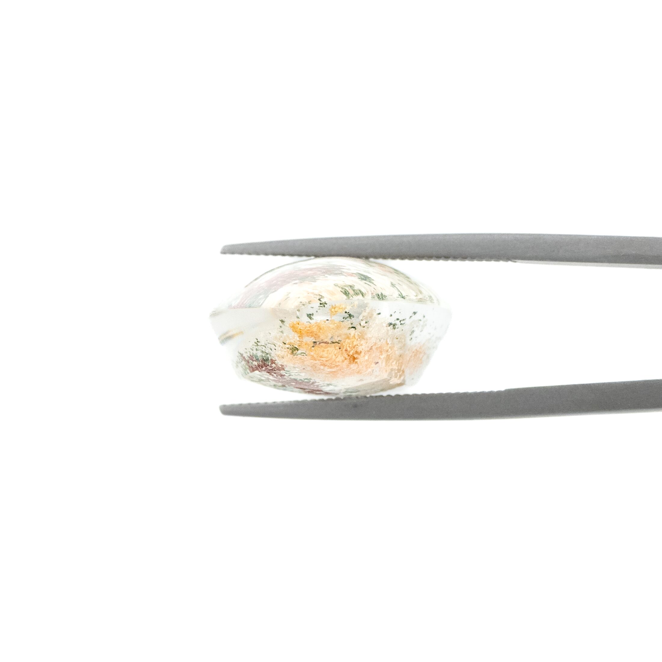 ガーデンクォーツは、まるむ商会にとって始まりの石。石を好きになったきっかけでもあります。それは、今を遡ること約十年前、タイに住んでいた時に初めて見た天然石ルースがガーデンクォーツだったから。そのインクルージョンの多様さ、景色の美しさ、水晶の潤んだような透明度に、ひと目で魅了されてしまったのを覚えています。それ以来、ガーデンクォーツは私の中で特別な地位を占めています。長い時を経て、水晶がさまざまな内包物を抱き込み、それがやがて美しい景色として人の目の前に現れる。ロマンあふれる物語を感じさせる石なのです。