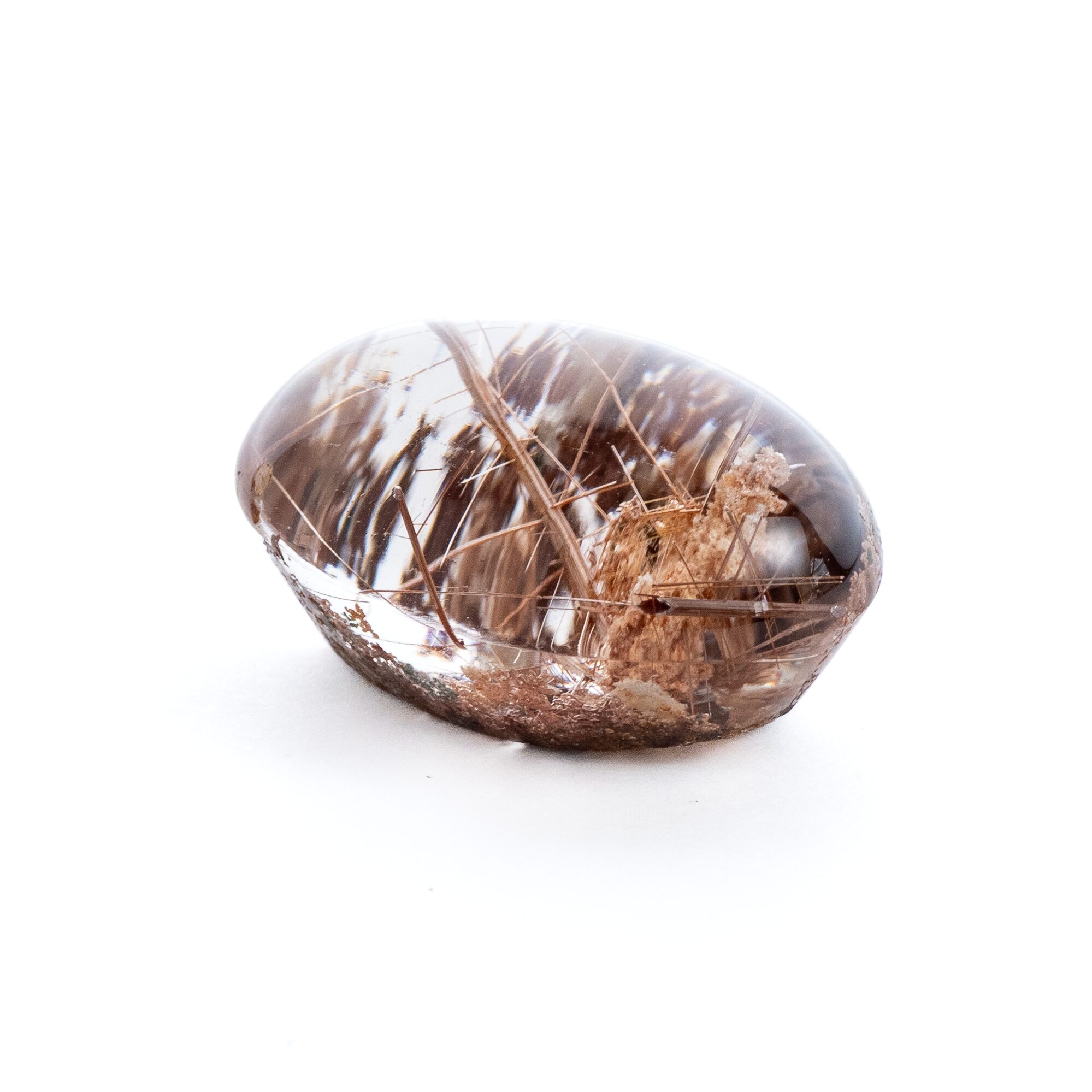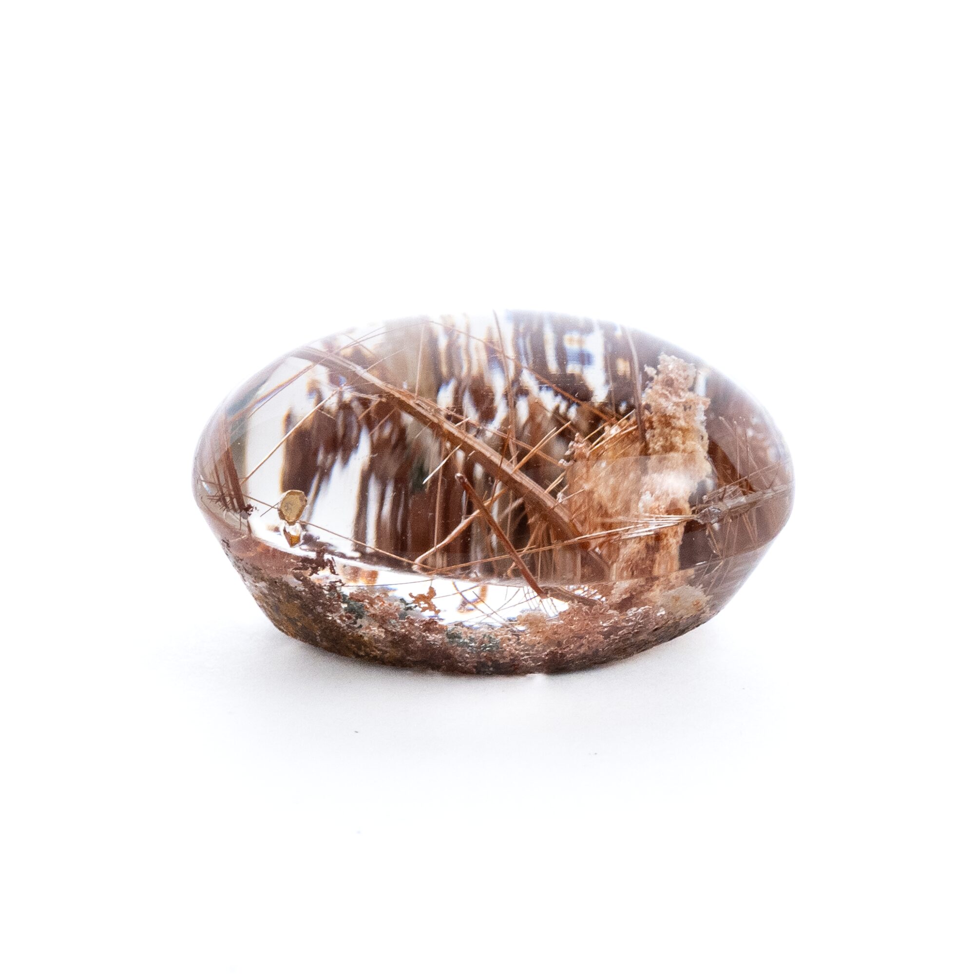 ガーデンクォーツは、まるむ商会にとって始まりの石。石を好きになったきっかけでもあります。それは、今を遡ること約十年前、タイに住んでいた時に初めて見た天然石ルースがガーデンクォーツだったから。そのインクルージョンの多様さ、景色の美しさ、水晶の潤んだような透明度に、ひと目で魅了されてしまったのを覚えています。それ以来、ガーデンクォーツは私の中で特別な地位を占めています。長い時を経て、水晶がさまざまな内包物を抱き込み、それがやがて美しい景色として人の目の前に現れる。ロマンあふれる物語を感じさせる石なのです。
