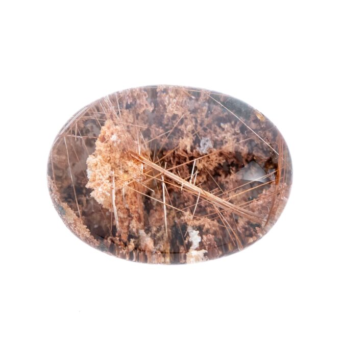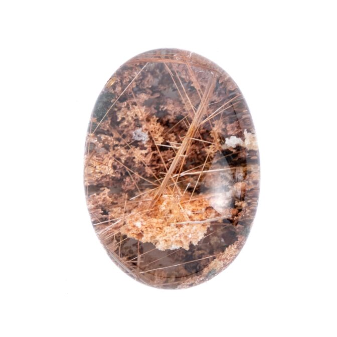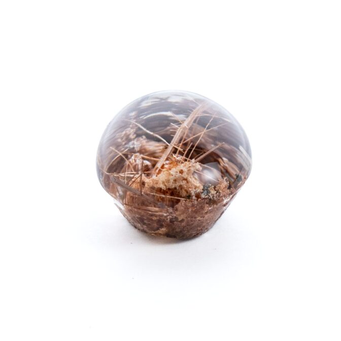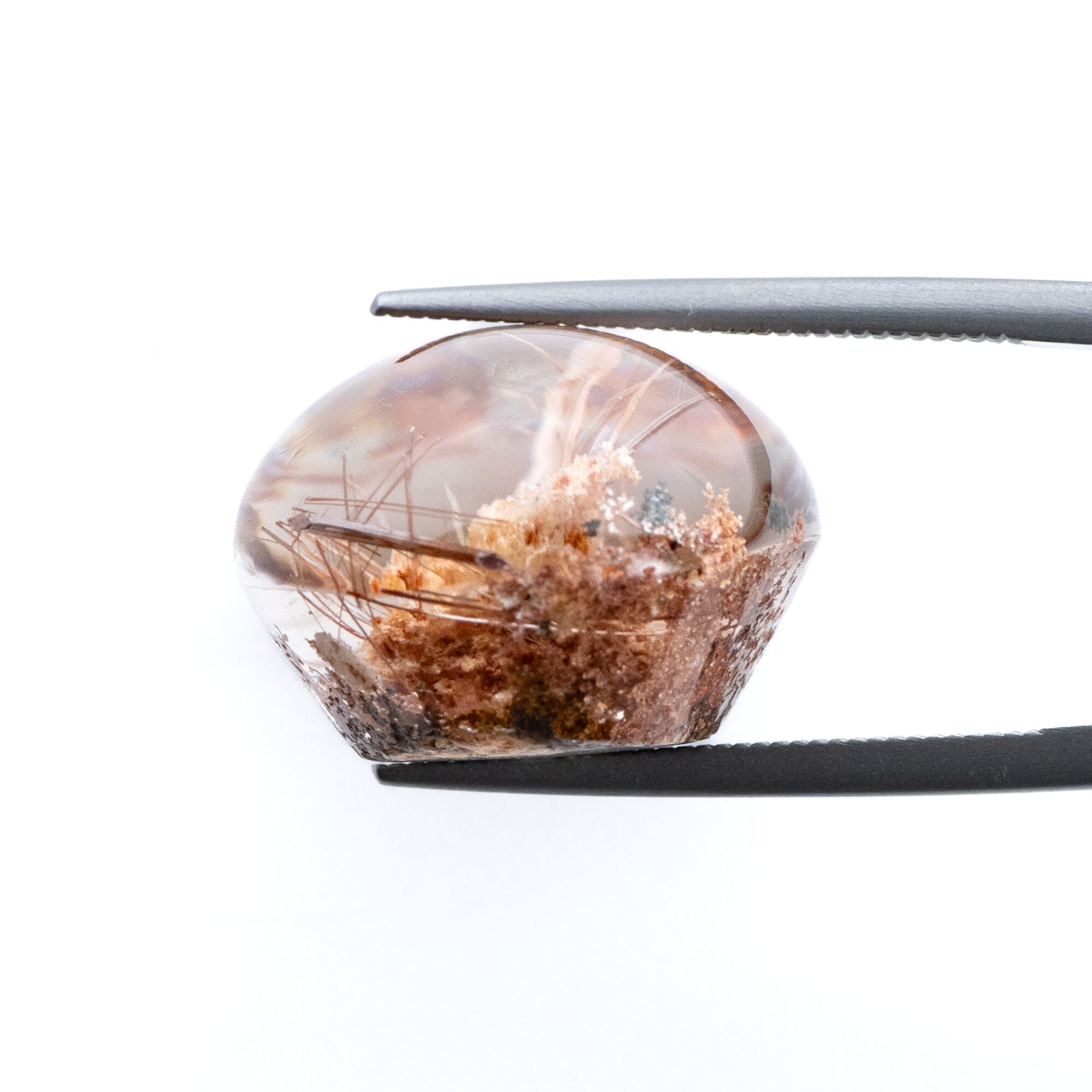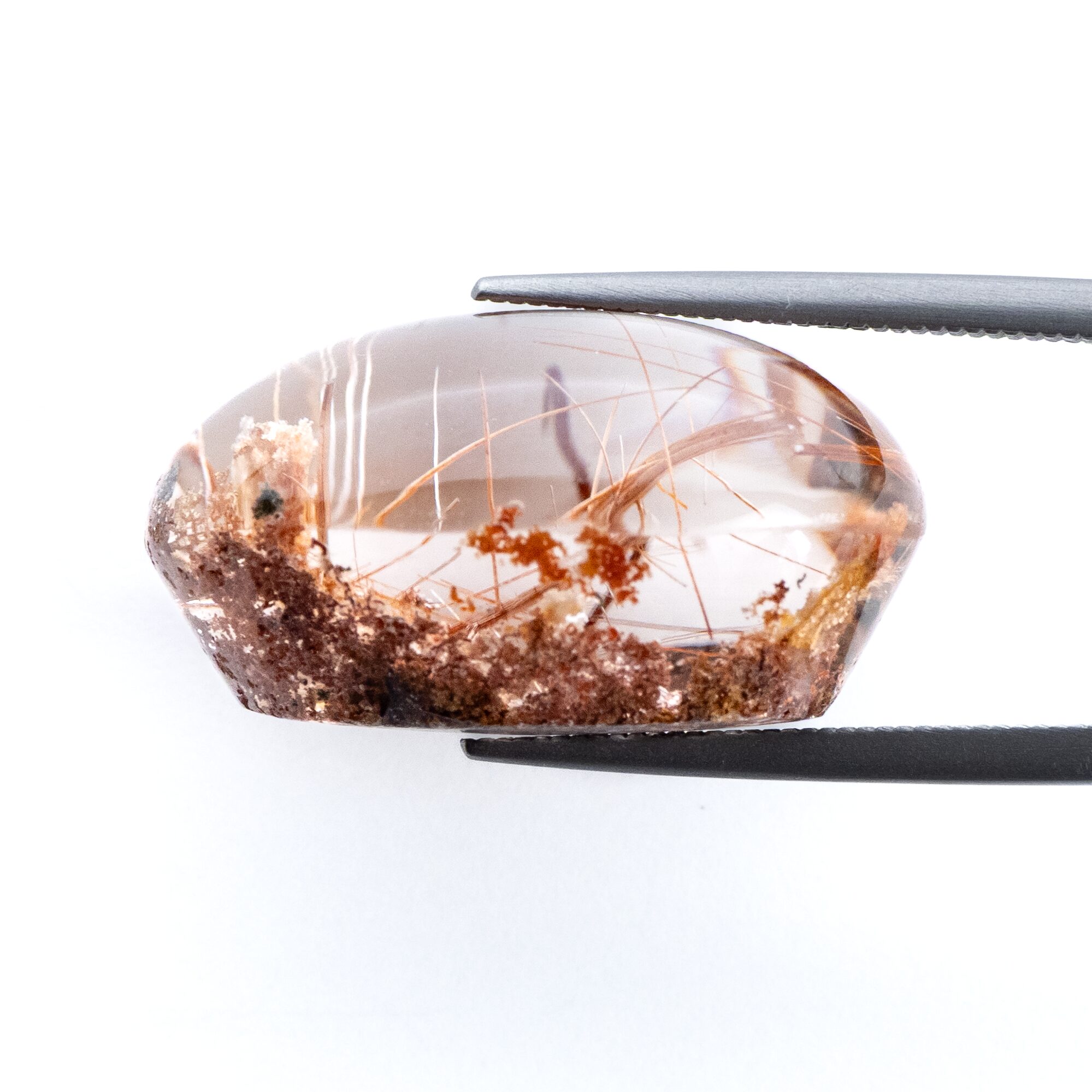 このページでご紹介するのは、深く暖かな温度感のコーラルピンクのインクルージョンに、鋭いコッパーブラウンの輝きを宿すルチルが縦横無尽に駆け巡る素晴らしいアートのようなピースです。潤みととろみのあるクォーツの底に横たわる内包物は、暖かな海珊瑚礁のような雰囲気を醸し出し、今にも魚や海の生き物たちが隙間から現れそう!豊かな透明さを誇るガーデンクォーツならではの景色を宿しています。