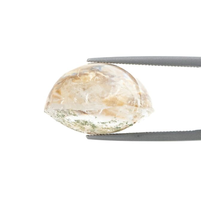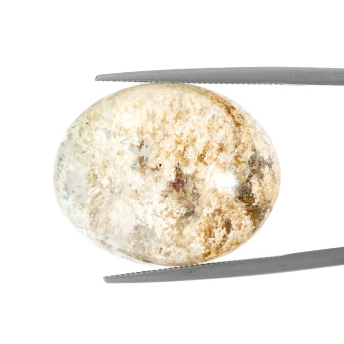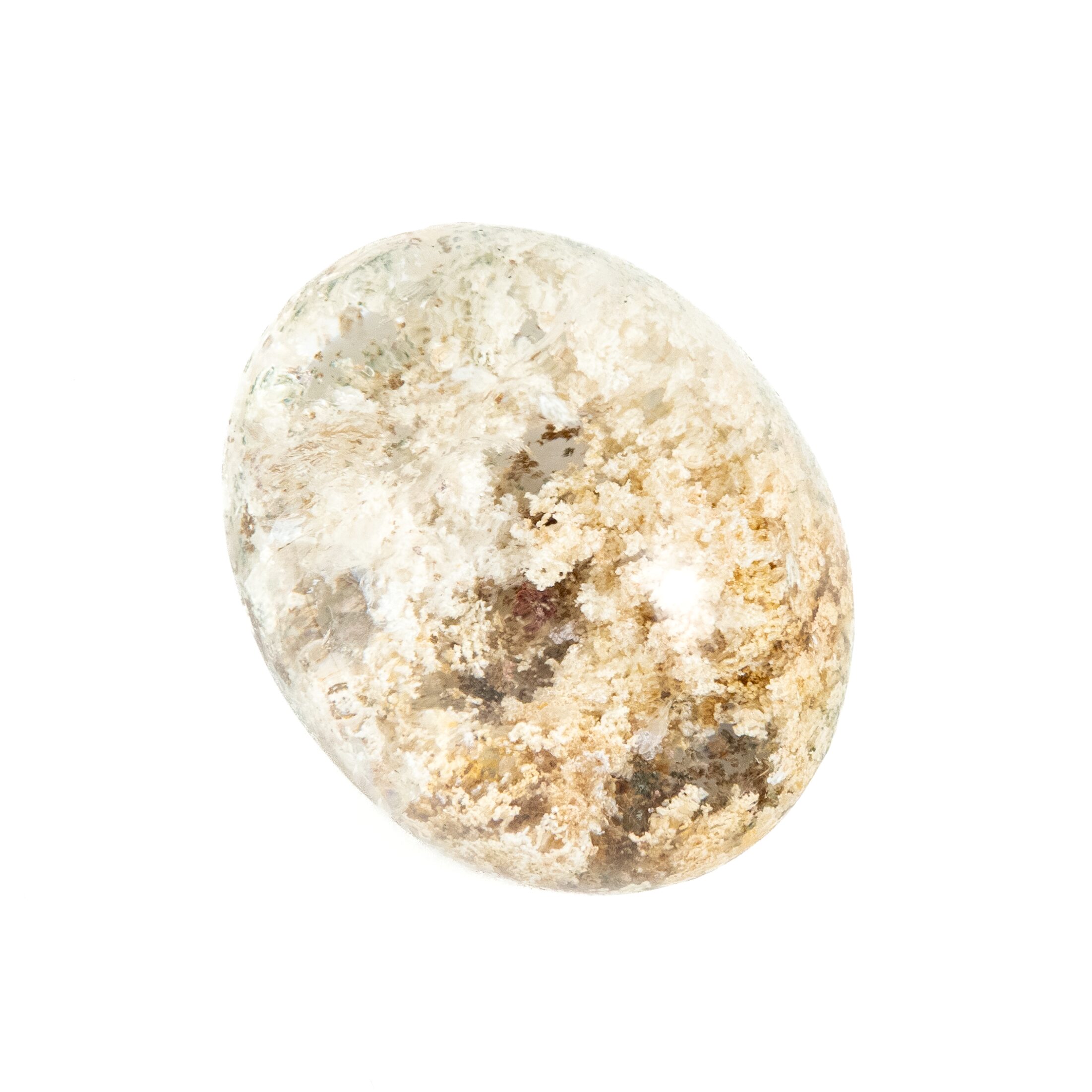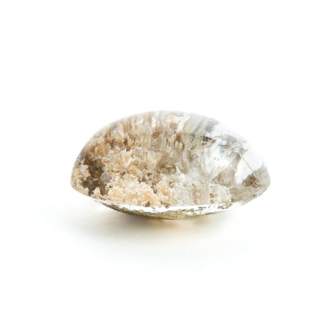 ガーデンクォーツは、まるむ商会にとって始まりの石。石を好きになったきっかけでもあります。今を遡ること約十年前、タイに住んでいた時に初めて見た天然石ルースが、ガーデンクォーツだったからです。そのインクルージョンの多様さ、景色の美しさ、水晶の潤んだような透明度に、ひと目で魅了されてしまったのを覚えています。それ以来、ガーデンクォーツは私の中で特別な地位を占めています。長い時を経て、水晶がさまざまな内包物を抱き込み、それがやがて美しい景色として人の目の前に現れる。ロマンあふれる物語を感じさせる石なのです。