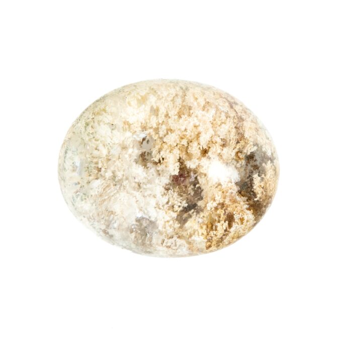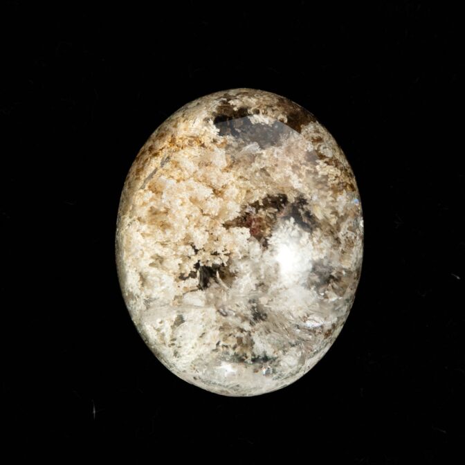 【人気のホワイトガーデンクォーツ。正統派のラウンドカボションカットです。】