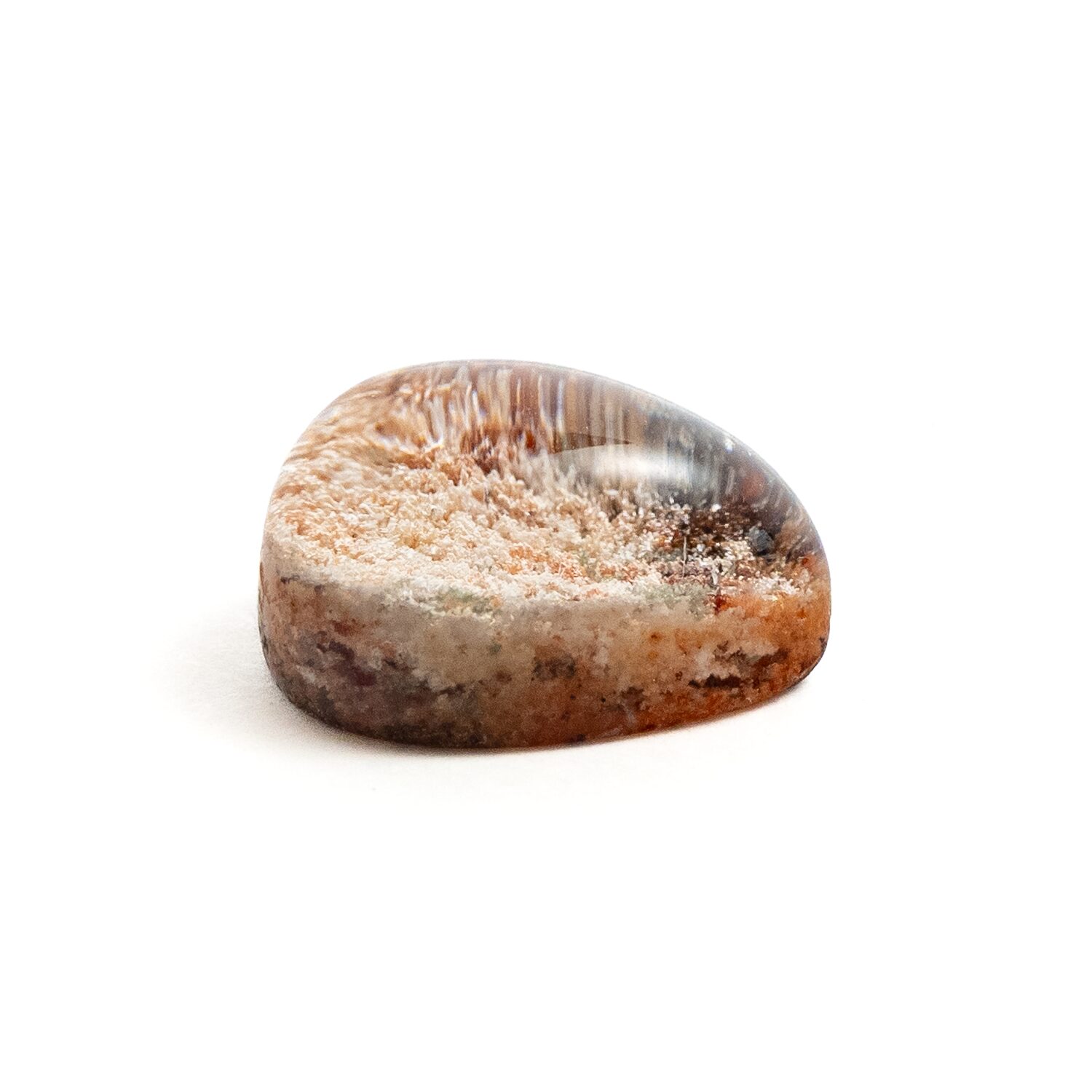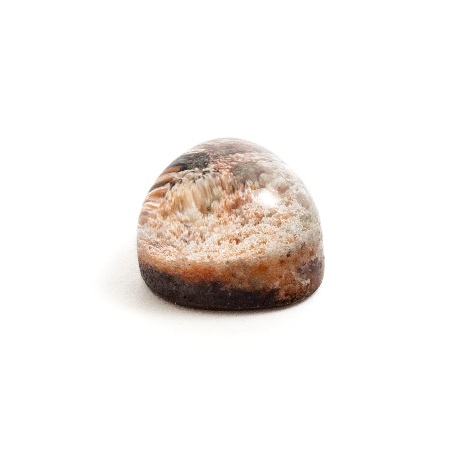 さて、そんなガーデンクォーツの中で最も人気なのが、小さめサイズのルース。リングやネックレスにぴったりの大きさで、ころんと丸くて可愛らしいのですよね。でも、最も入荷が難しいのも小さめサイズなのです。インクルージョンをセンス良く切り取ってバランスよく配置できるよう研磨してこそのガーデンクォーツ。小さければ小さいほど、美しい景色を内包できる部分が少なく、変化に乏しく魅力が少ないルースとなってしまいます。そんな理由で、小さいサイズを見かけたらなるべくたくさん仕入れていたのですが、つい先日ついに完売。困っていたところで、懇意にしている仕入れ先さんがふらりと持って来てくださったのが、このページでご紹介しているルースです。
