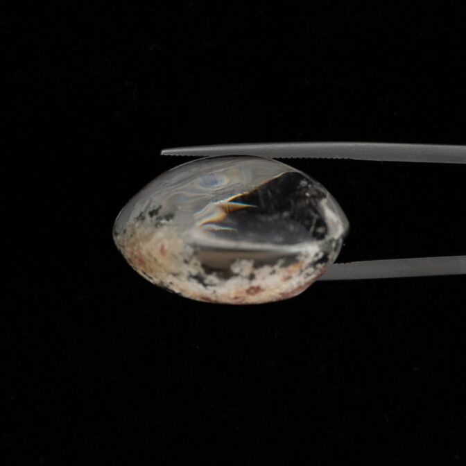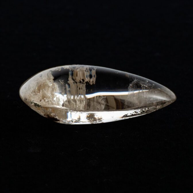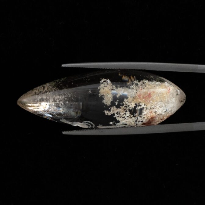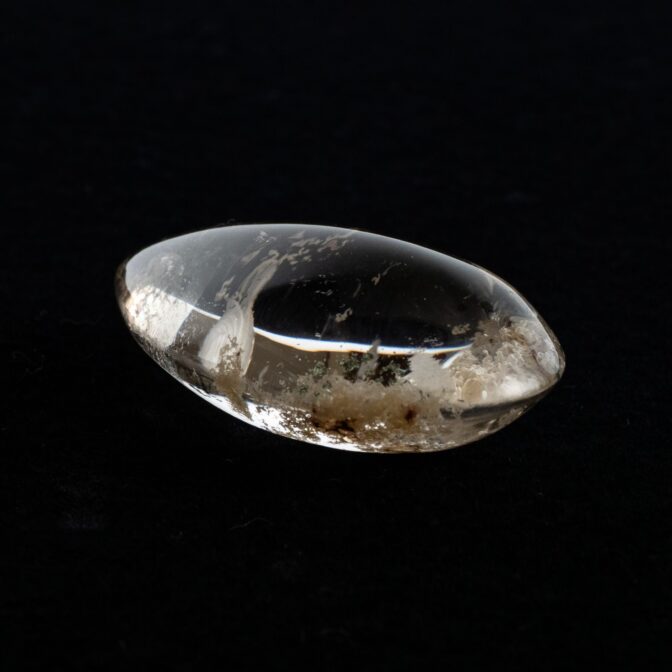ガーデンクォーツは、まるむ商会にとって始まりの石。石を好きになったきっかけでもあります。それは、今を遡ること約十年前、タイに住んでいた時に初めて見た天然石ルースがガーデンクォーツだったから。そのインクルージョンの多様さ、景色の美しさ、水晶の潤んだような透明度に、ひと目で魅了されてしまったのを覚えています。それ以来、ガーデンクォーツは私の中で特別な地位を占めています。長い時を経て、水晶がさまざまな内包物を抱き込み、それがやがて美しい景色として人の目の前に現れる。ロマンあふれる物語を感じさせる石なのです。