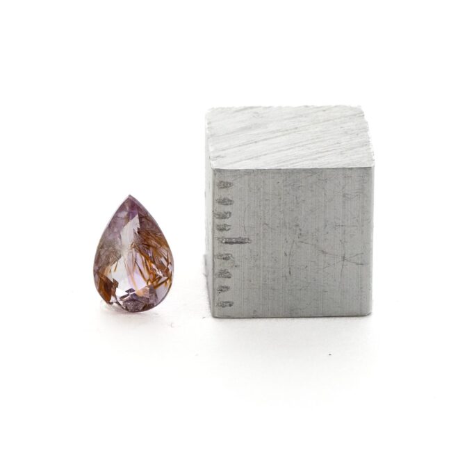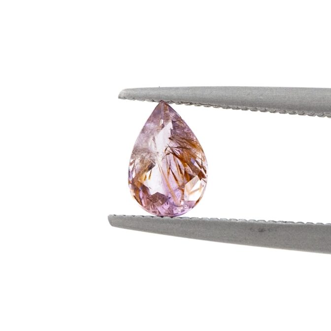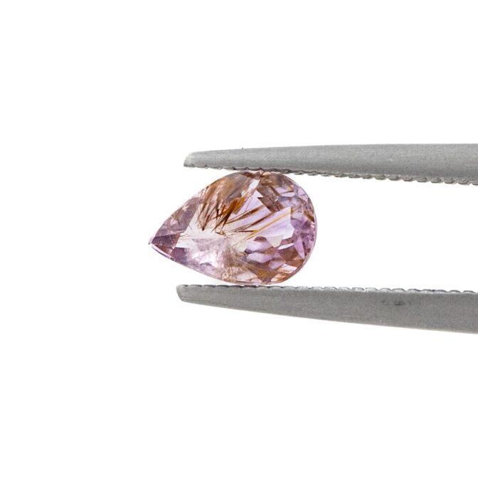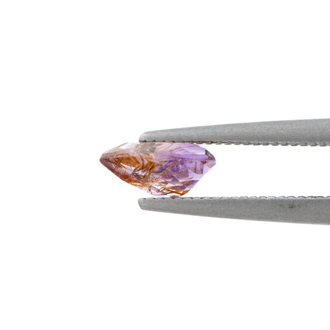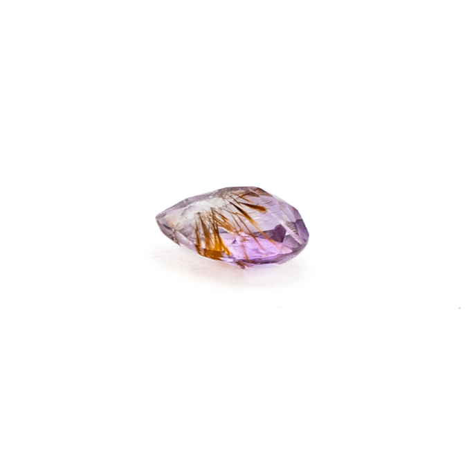 キラキラ輝くアメジストの中に、細い針状のゲーサイトが入って、独特の雰囲気を作り出すゲーサイトインアメジスト。インクルージョンの入り方によって、全く違う石のような表情を見せるのが魅力です。今回ツーソンでセレクトしてきたのは、濃厚な紫色のアメジストに褐色の繊細なゲーサイトが散りばめられ、まるで花火ように華やかな美しさのルース。全体的に透明度が高く、丁寧に研磨されているため、小さくとも宝石として圧巻の存在感を放ちます。