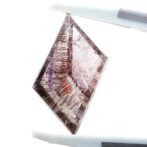 このゲーサイトインアメジスト、不純物が豊かな表情を作り出しているため、なかなか美しい個体に出会うのが難しいのが難点。濁っていたり、クラックがはいっていたり、研磨がいい加減だったり。でも、美しい個体に出会えた時、そのユニークさには一目で虜になってしまうほど。このページでご紹介しているルースも、独特の力強いインクルージョンを活かし、直線だけで構成されたシャープなカットに仕上げられ、壮大なスケール感を感じさせてくれます。地球が生み出した石との一期一会の出会いはとてもドラマティックなのです。