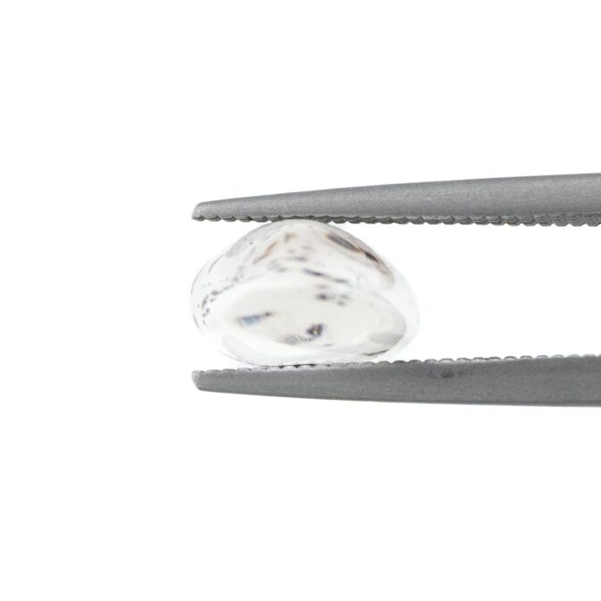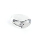 あくまでも丸く柔らかく、一つも角がなくコロンとした形は、手のひらで転がすたびに思わず笑顔になってしまいそうな愛らしさ。でも、その合間に黒く鋭い輝きを放つヘマタイトが、可愛いだけでは済まされない個性を覗かせます。底面を平らにすることなく、両方の面をふっくらとカボションに磨き上げているので、表裏どちらも使えるのが魅力。もしジュエリーにするなら、ペンダントトップにしてその日の気分で使うのも良し。リングにするのであれば、どちらを表にするか迷うのすら楽しい日々になりそうです。