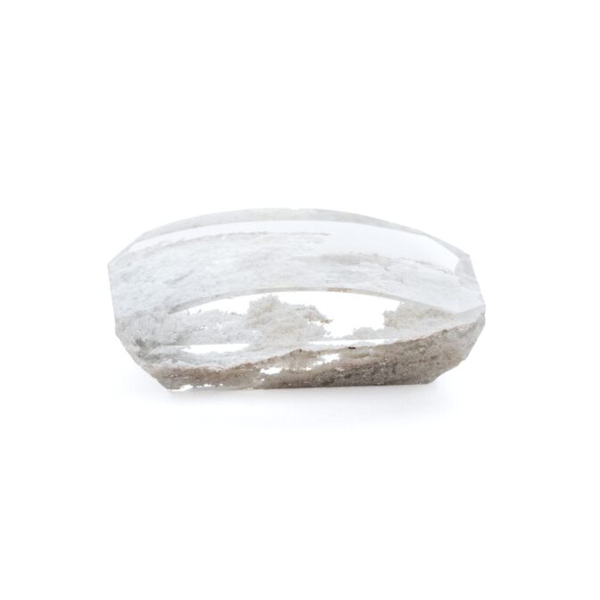 そんなさすらい旅の中で今回タイ出会ったのが、素晴らしく芸術的な超大粒ホワイトガーデンクォーツです。透明感たっぷりの澄んだクォーツに、白く上品な美しさのインクルージョンが静かに輝いています。みずみずしく潤んだ光沢をもつ水晶の中で、まるで純白の雪景色のように連なるインクルージョンは、冬の雪景色のように幻想的。小さな頃に読んだ童話の、雪の国のようで、イマジネーションを刺激してくれます。複雑に折り重なった白の影から、今にも雪の女王や、不思議な動物が飛び出してきそうで、ファンタジックな妄想が止まりません。ベースとなるクォーツの質が大変良く、美しい内包物をクリアに透かす透明度があればこそ、初めて完成する美。加えて人間の手でつややかに磨かれ、唯一無二、一点ものに相応しいきらめきと世界観を持つことができるのです。いわば、大地と人間がそれぞれ手間をかけて生み出した、コラボレーション作品なのです。