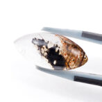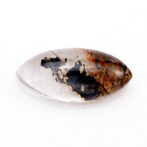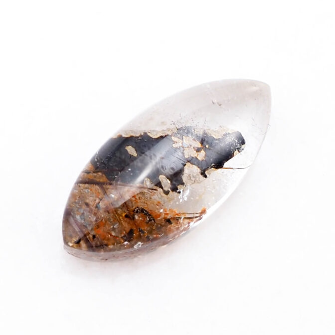 このページでご紹介しているマイカインルチルクォーツは、バランスよく綺麗にカットされたマーキスシェイプ。シャープでキレのある輪郭と、丸くドームを描くカボションの柔らかさとのギャップがたまらなく可愛いのです。インクルージョンが描く模様の配置も洗練された雰囲気を漂わせ、ただものではないオーラを放ちます。個性的なオーラを漂わせているので、人と違うセレクトをしたい方におすすめ。自分だけの石、という特別感を演出してくれます。