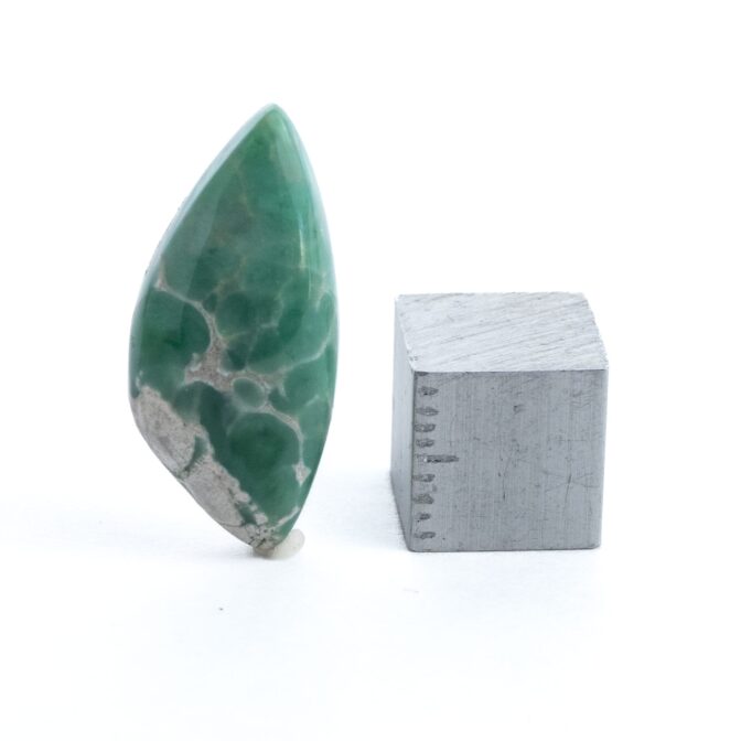 バリスサイトの色味、なんだか見たことがあるとおもったのです、それもそのはず。彩度が高く濁りのないグリーンの発色は、少量のクロムが関係しています。そう、あのエメラルドのグリーンもクロム由来の色なのですね。なるほど、そうなると目の覚めるような美しいグリーンになるのも納得できます。クロムの力は偉大です。
