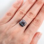 今回ご紹介するこの一石は、左にそびえる峻烈な峰と、右に広がる静かな森。柔らかなクッションカットの輪郭が、冷たくも美しい水墨の世界を優しく包み込んでいます。