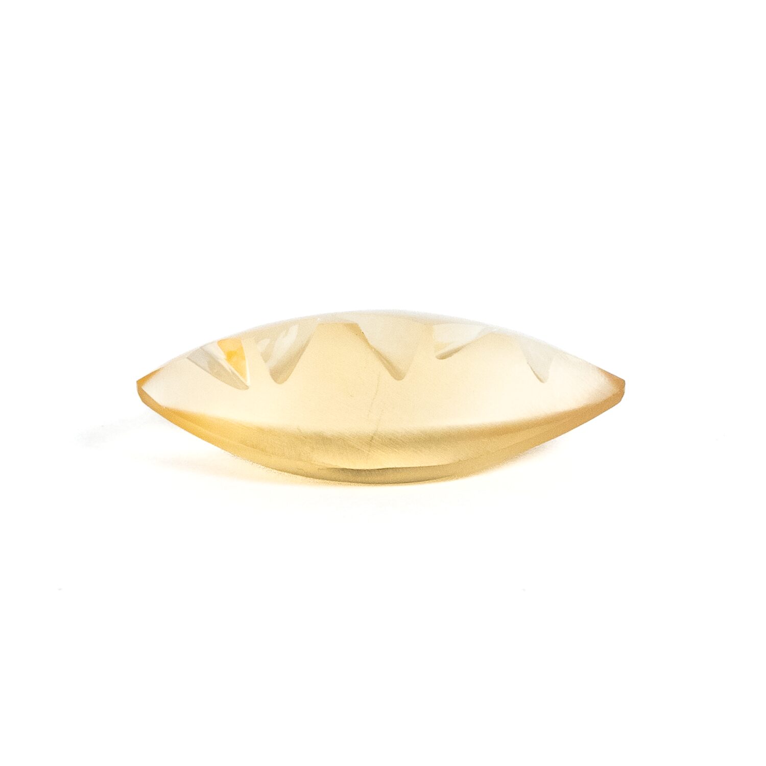けれど、その内側から溢れ出すのは、ただのシトリンと呼ぶにはあまりに惜しい、とろけるような黄金の輝きです。この石自体が持つ、極めて質の良い、温かみのある色彩。それが「ぷるん」と丸みを帯びた表面では優しく、光の角度が変わればキリッと鋭い閃光を放ち、見る者を「これは一体、どうなっているの?」という心地よい迷路へと誘います。