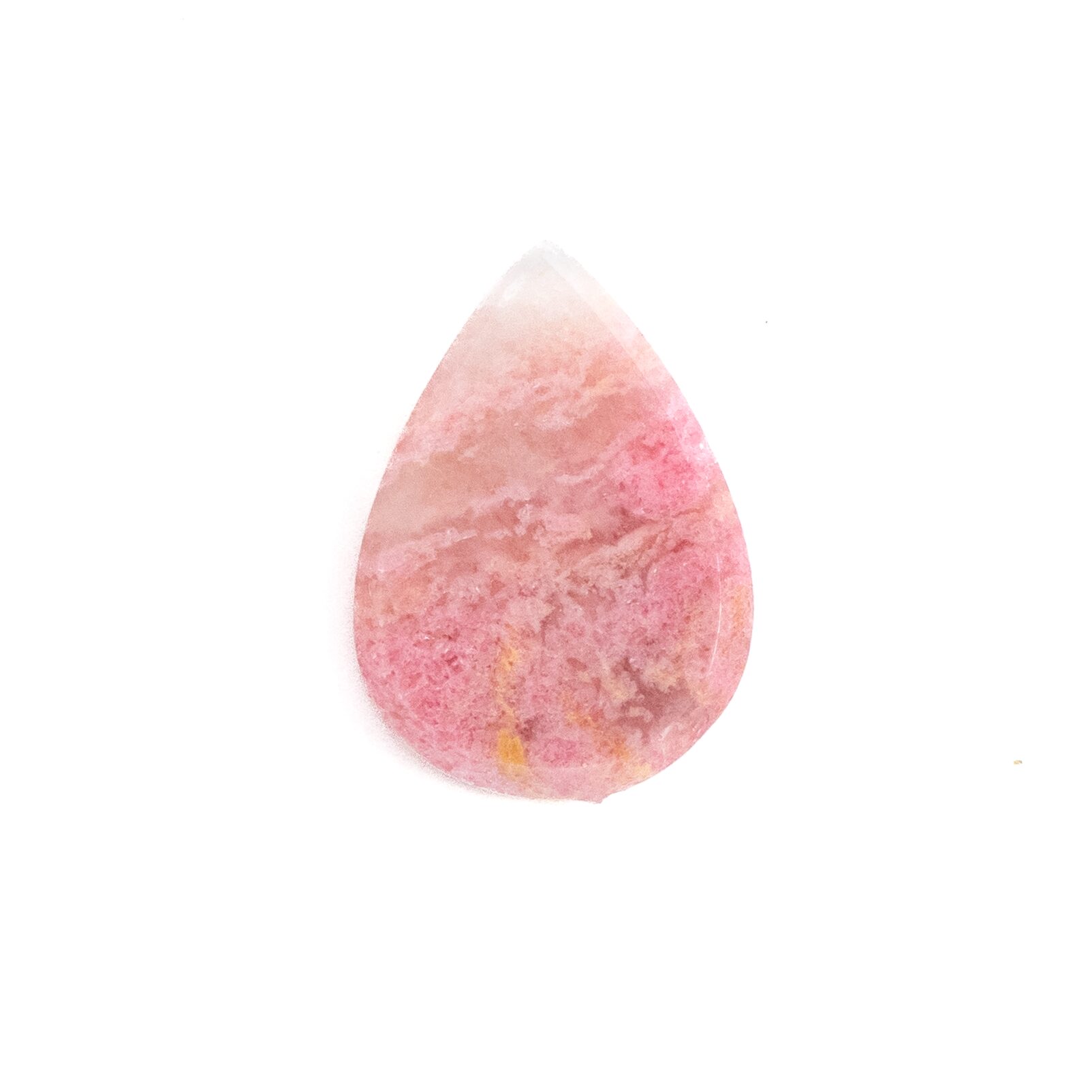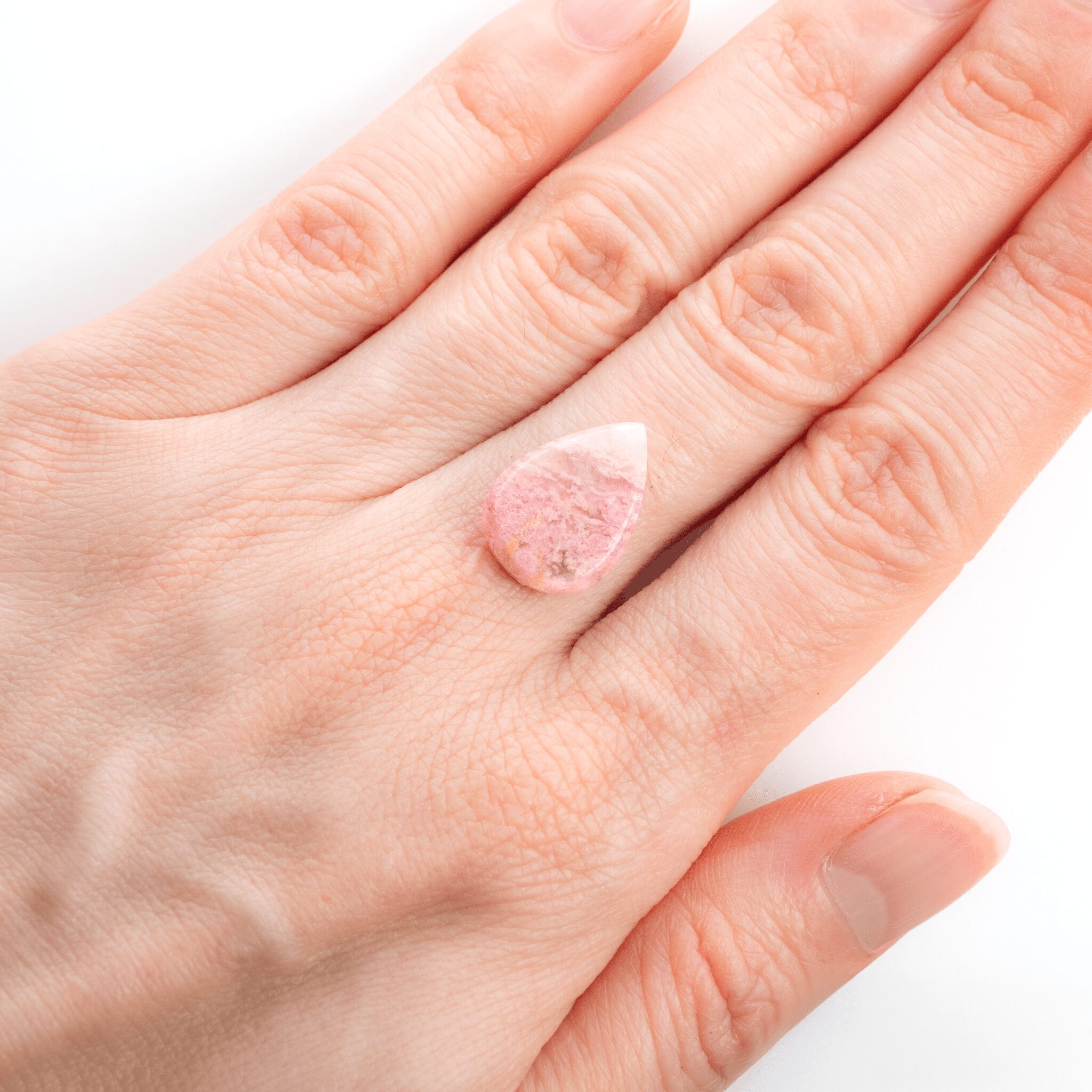 <特徴>: クォーツの中にロードナイトがふわふわと共生する、二つと同じものがない「一期一会の文様」。雪解け水に桜の花びらが舞い落ちたような、みずみずしくも幻想的な色彩の対比。
