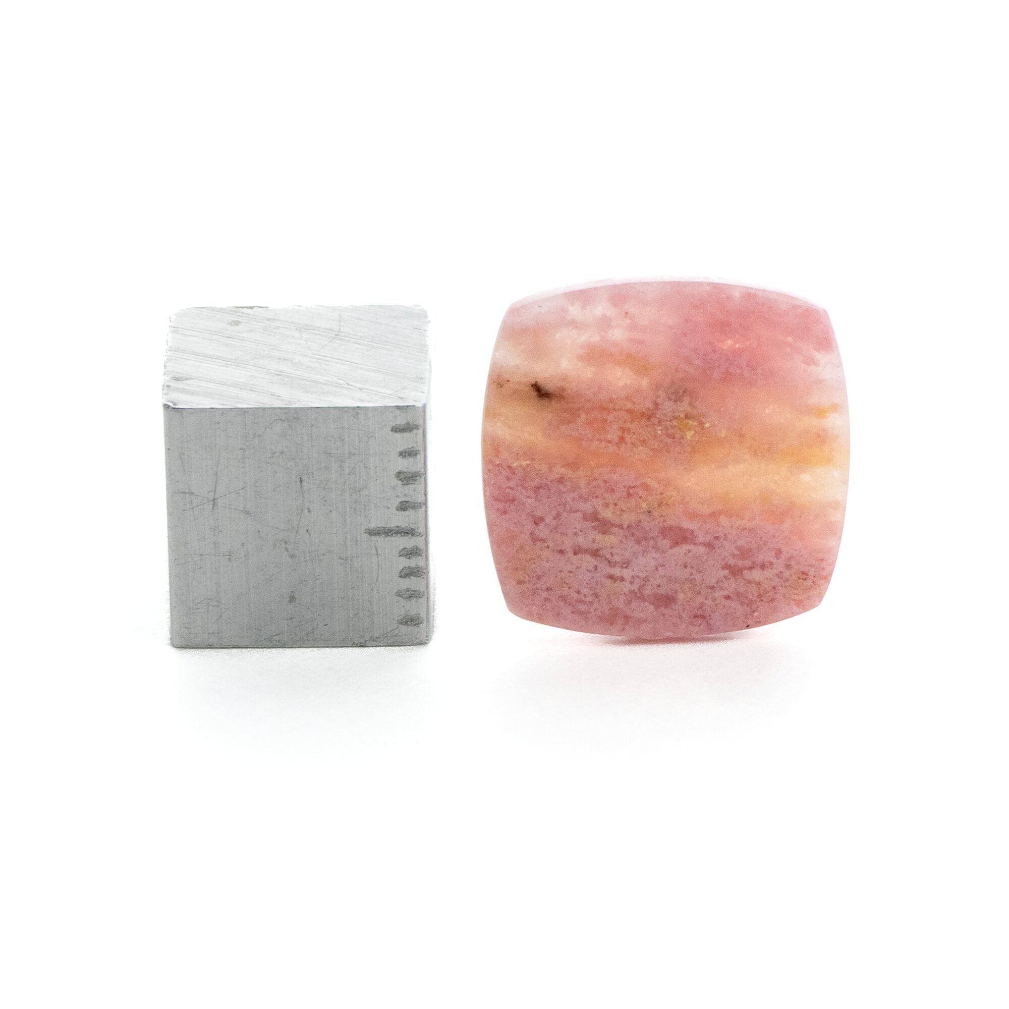 砂漠の街ツーソン。その乾いた直射日光を浴びながら、聞き取りにくい訛りの英語を話すオーナーさんと一時、石好き同士の会話をかわす。ふと彼の手元に見えた、ピンク色が流れるように入った石。