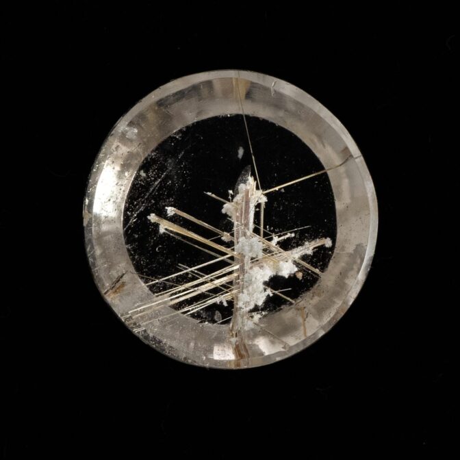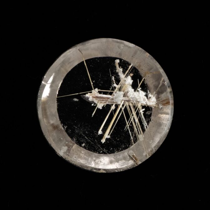 突き抜けるように透明なクォーツと、自ら光輝いてみせるインクルージョンのコントラストは、劇的な美しさ。