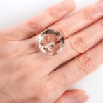 その周囲を白く小さな花弁を持つ花のようなインクルージョンが飾る。