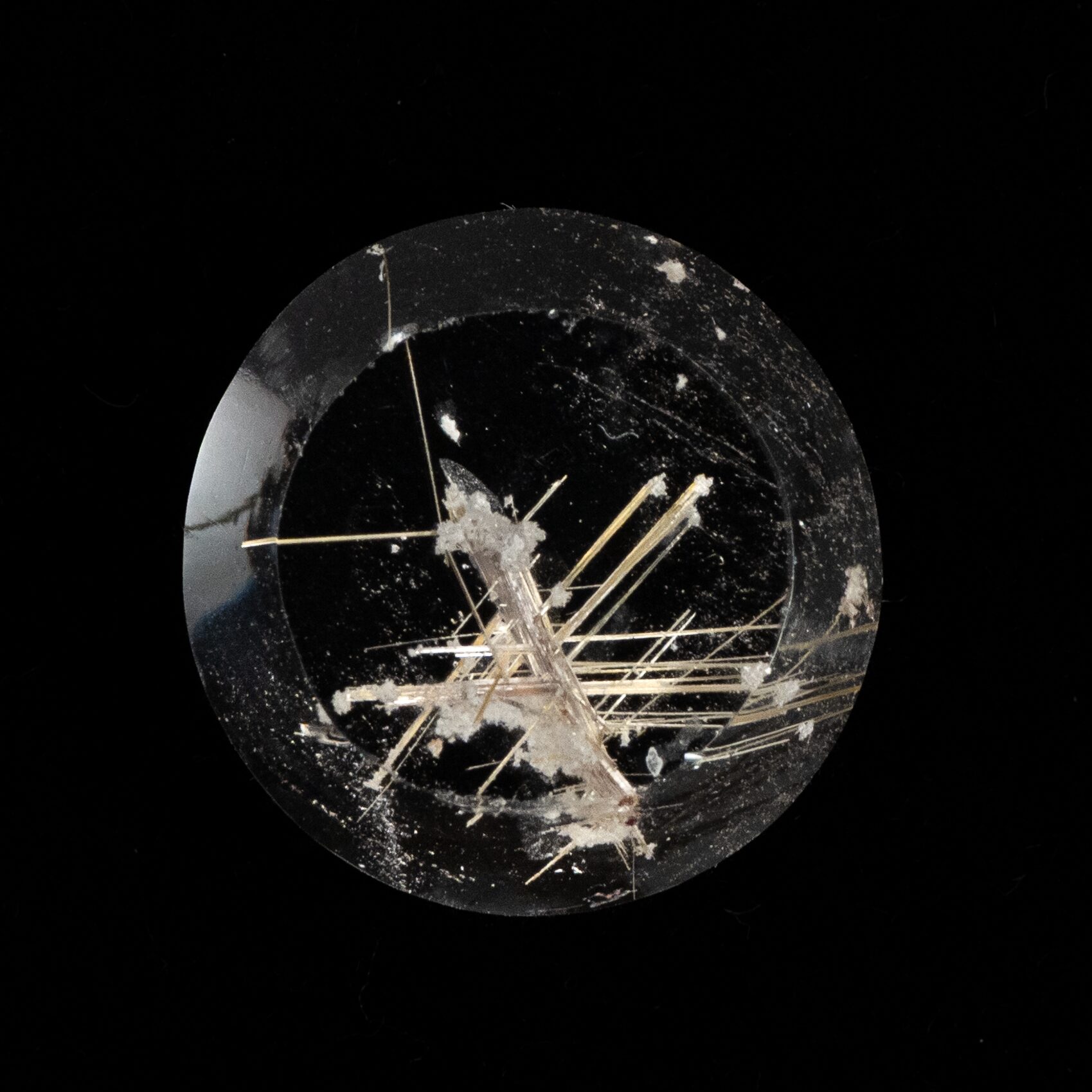 眩い金糸が描く構築美|ルチルクォーツ 27.0ct 稀少な白い花を纏った一石 ブラジル産