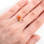 様々なカラーがあり、グリーン、ブルー、グレイ、レッドなど色によって全く雰囲気が変わります。今回セレクトしたのは、桜ピンクやサーモンピンクのエメラルドカットのルースたち。とても品がよく、そっと素肌に寄り添いながらもパッと華やぐ存在感を放ちます。