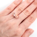 様々なカラーがあり、グリーン、ブルー、グレイ、レッドなど色によって全く雰囲気が変わります。今回セレクトしたのは、桜ピンクやサーモンピンクのエメラルドカットのルースたち。とても品がよく、そっと素肌に寄り添いながらもパッと華やぐ存在感を放ちます。